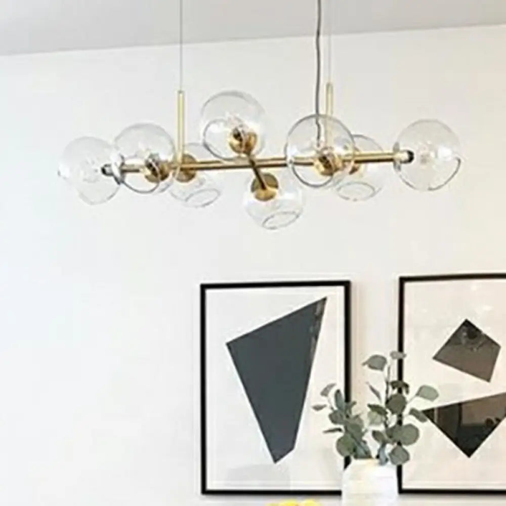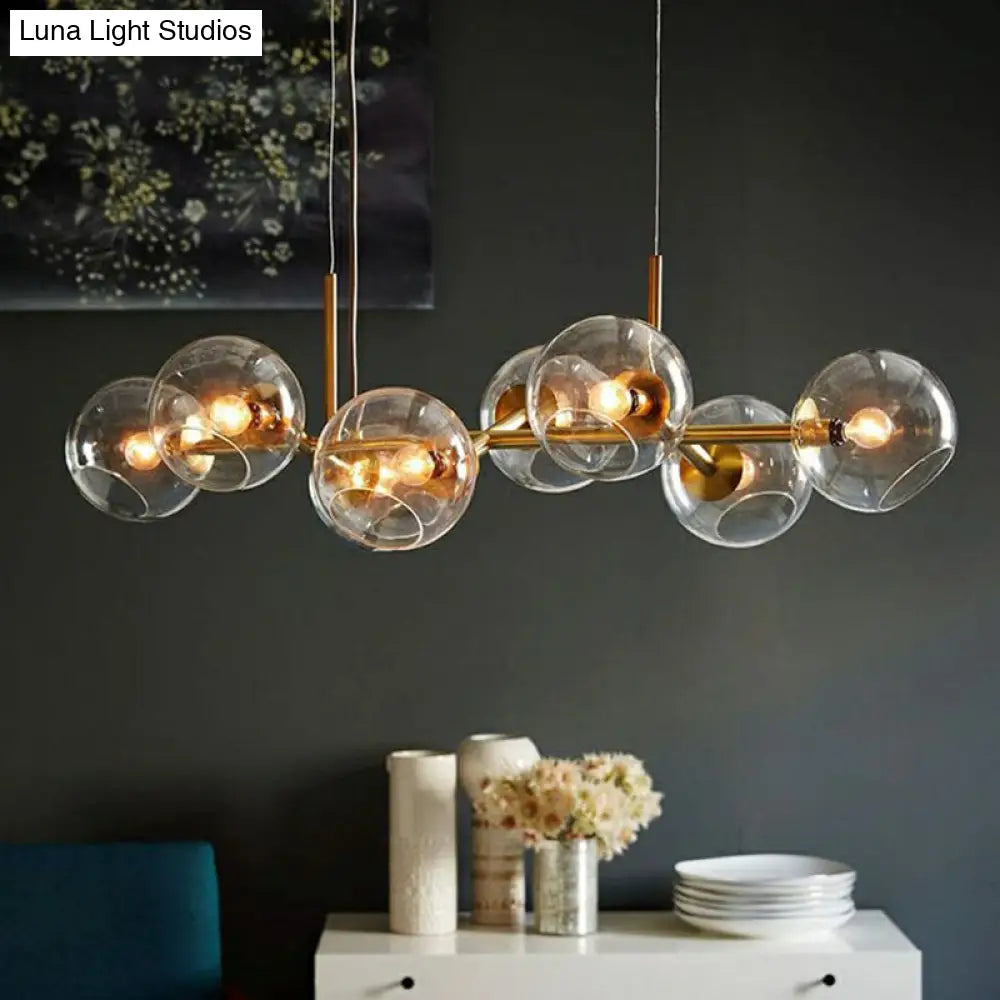ديكوربايتس™ - إضاءة جزيرة نحاسية عصرية مع ظلال زجاجية مقببة - إضاءة معلقة لغرفة الطعام بثمانية مصابيح