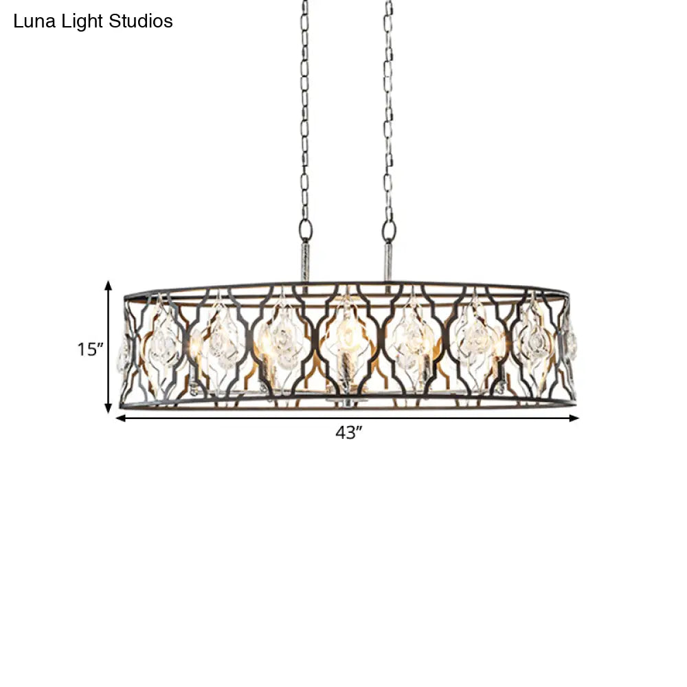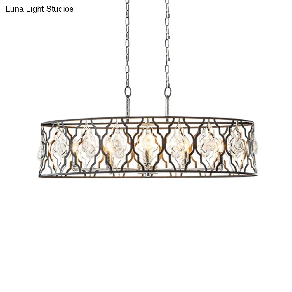 مصباح معلق حديث على شكل أسطوانة بتصميم جزيرة من DecorBites™ | معدن أسود مع لمسة من الكريستال | مصباح معلق بـ 8 لمبات