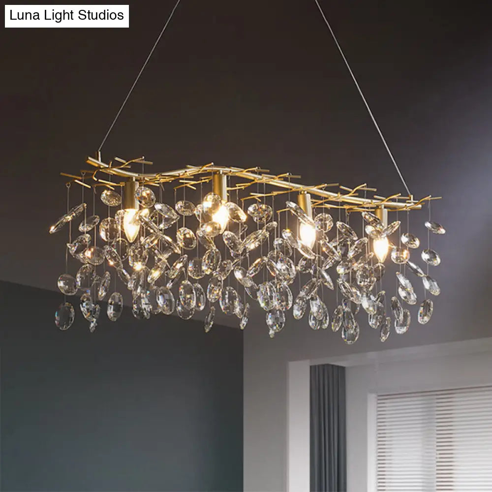 ديكوربايتس™ مصباح معلق حديث ذهبي متفرع على شكل جزيرة مع قطرات كريستال - مصباح معلق معدني بأربعة لمبات