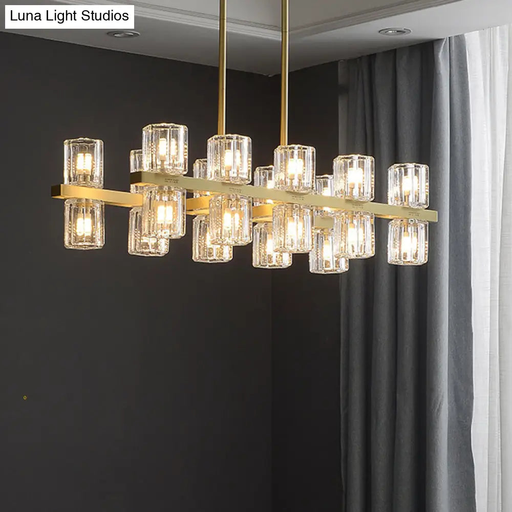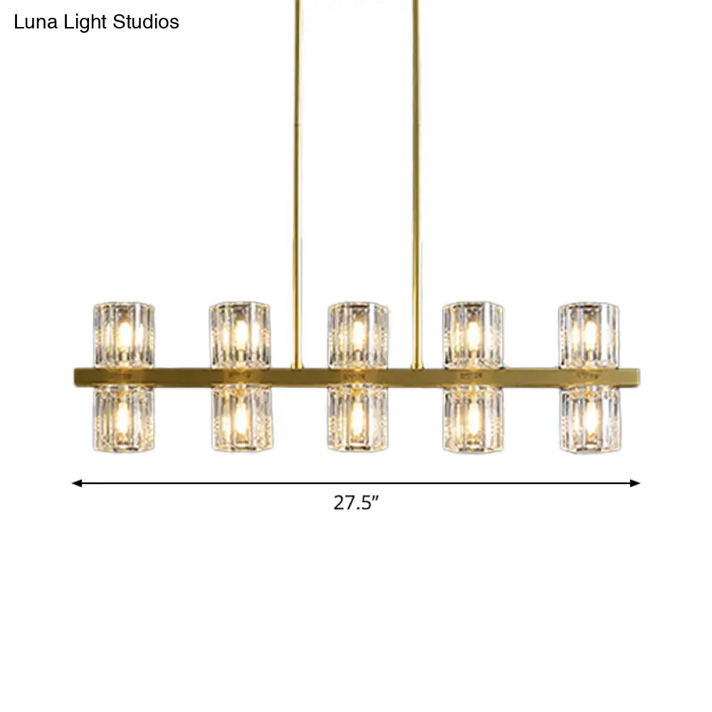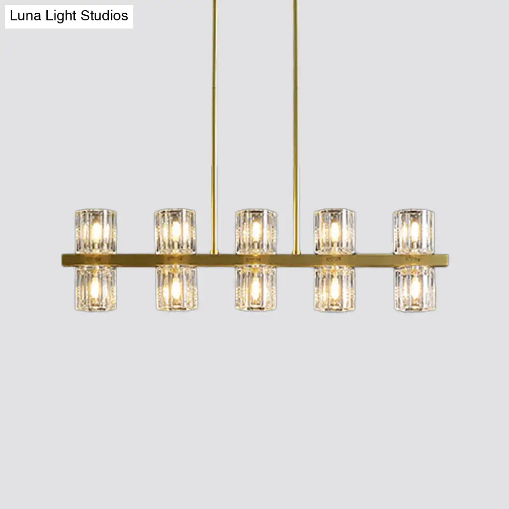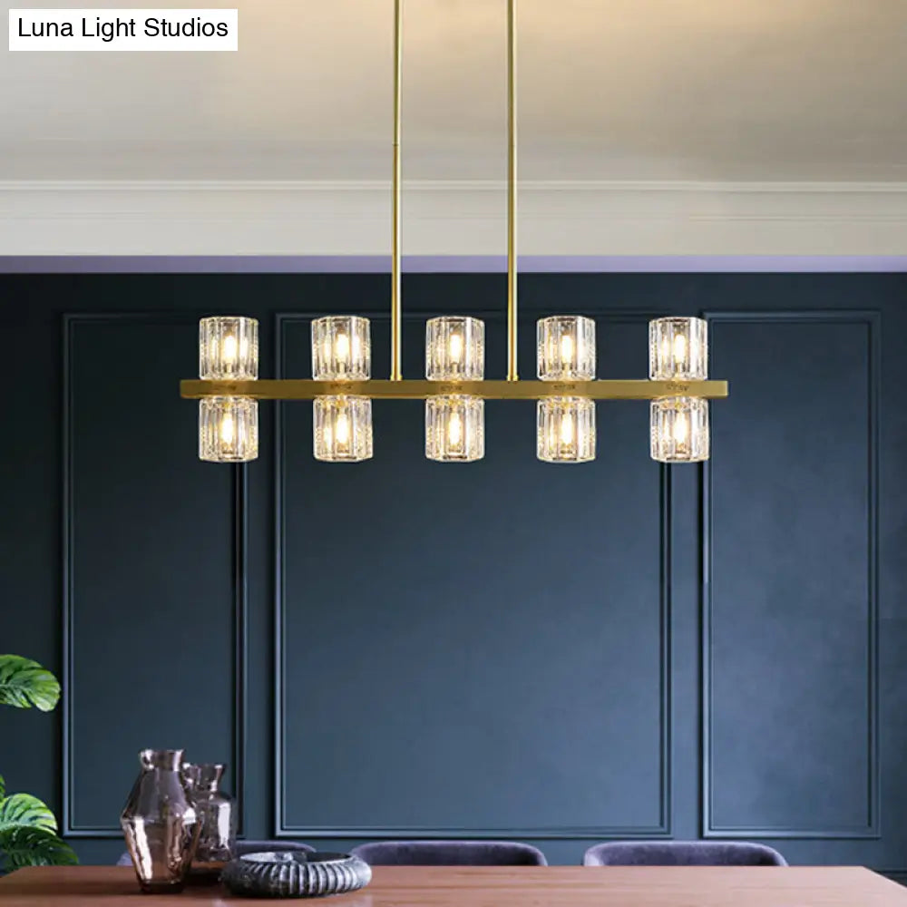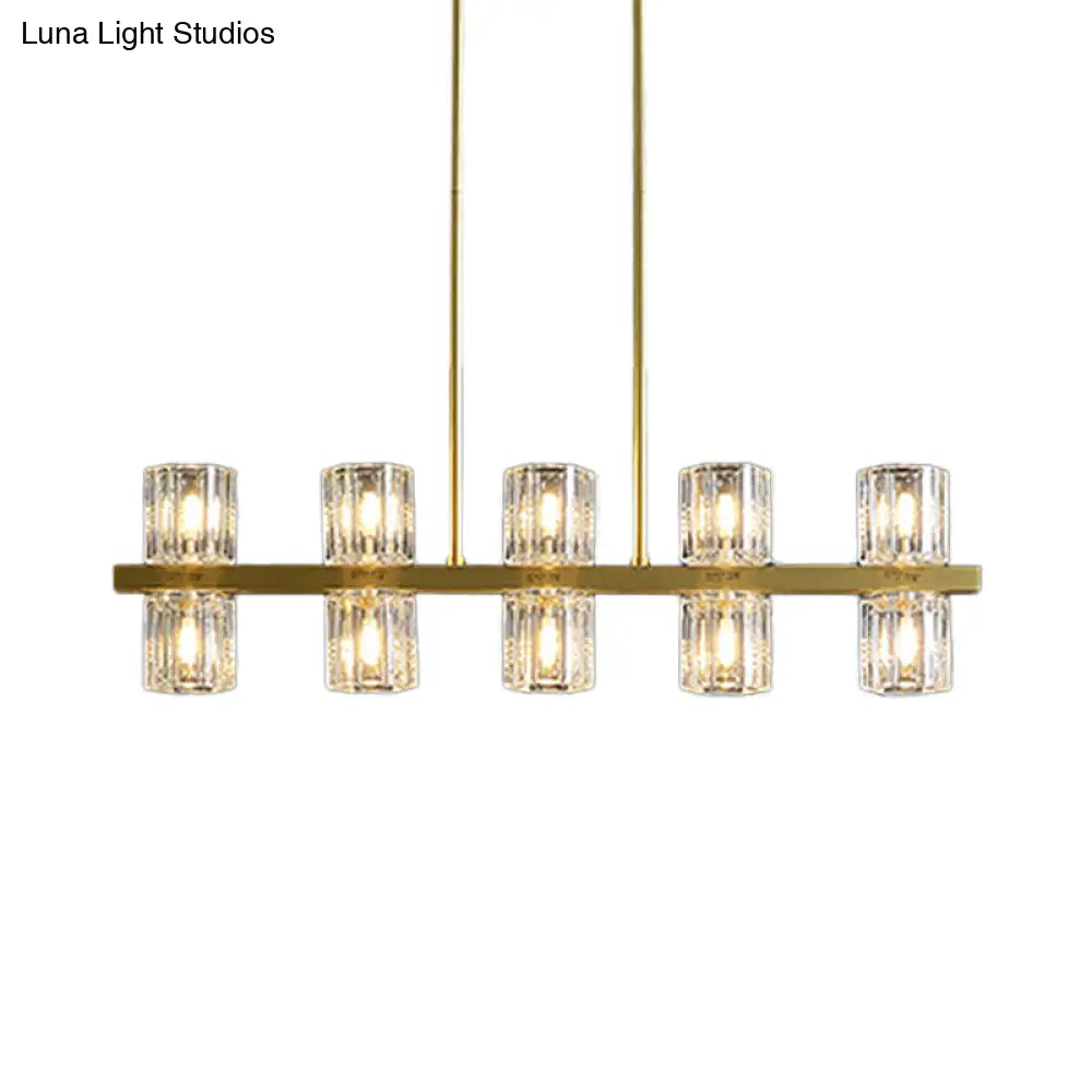 ديكوربايتس™ مصباح كريستالي أسطواني ذهبي حديث مع أضواء جزيرة 10/20 لطاولات الطعام