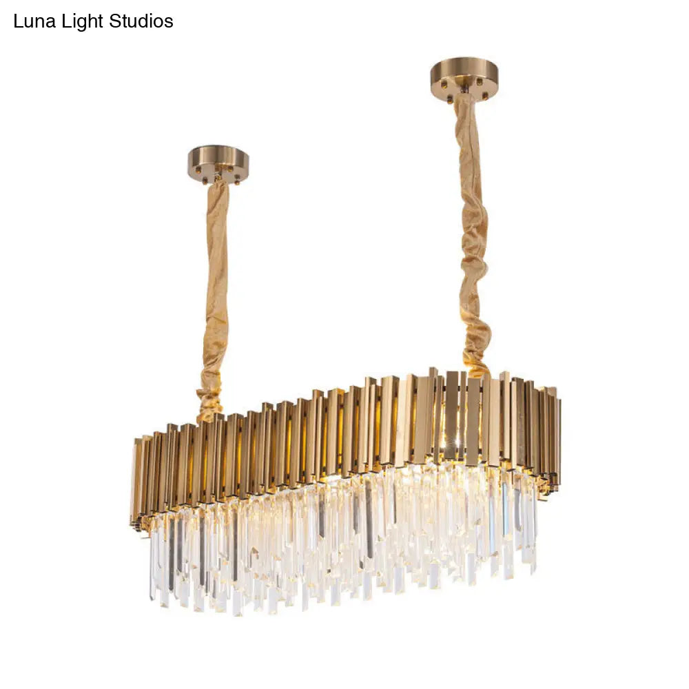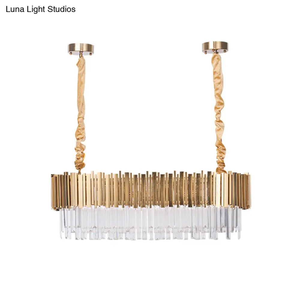 ديكوربايتس™ مصباح معلق مستطيل الشكل بتصميم جزيرة عصري مع قضبان كريستالية باللون الذهبي - إضاءة 6/8، عرض 23.5 بوصة/31.5 بوصة