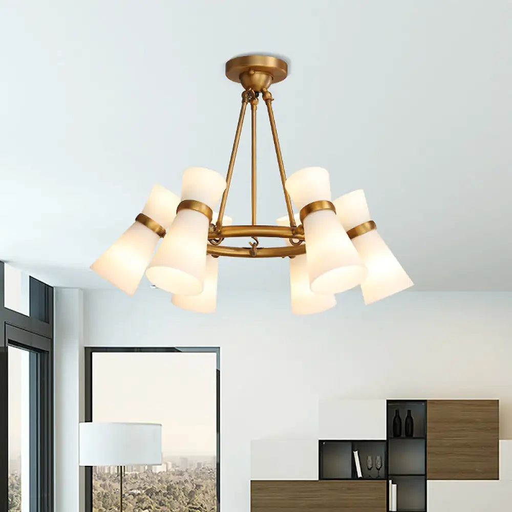 ثريا ديكوربايتس™ العصرية من زجاج الأوبال - توهج واسع، 16 لمبة - وحدة إضاءة معلقة باللونين الأسود والذهبي
