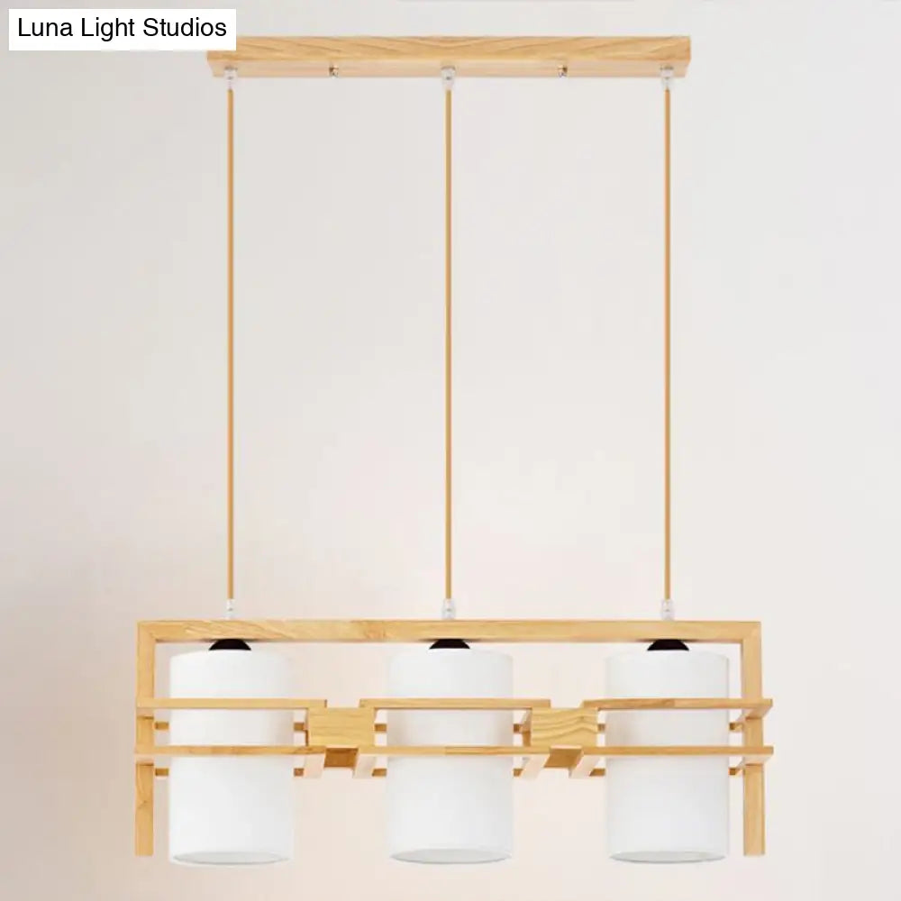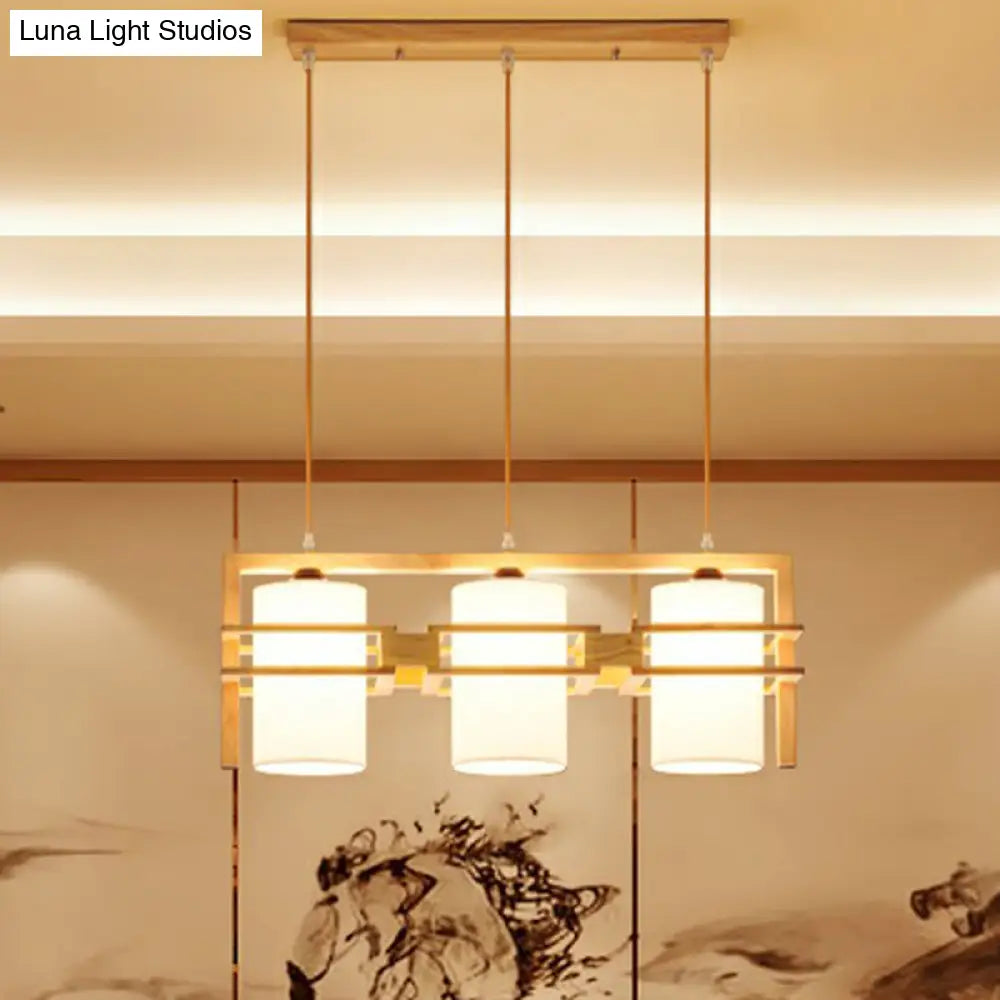 ديكوربايتس™ مصباح معلق خشبي حديث بثلاث لمبات مع غطاء أسطواني من القماش