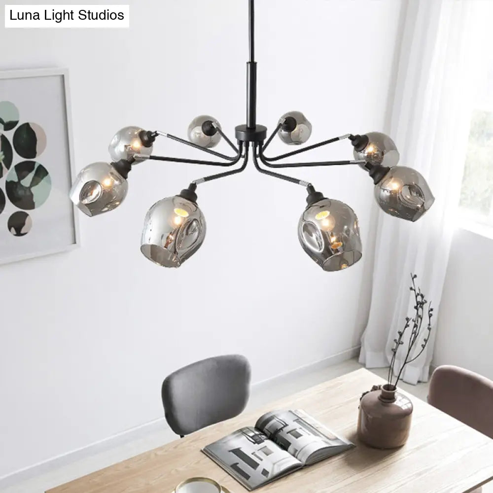 ثريا ديكوربايتس™ الحديثة على شكل كوب - زجاج رمادي دخاني مع 8 مصابيح - مصباح معلق أسود لغرفة المعيشة