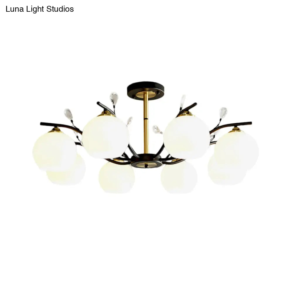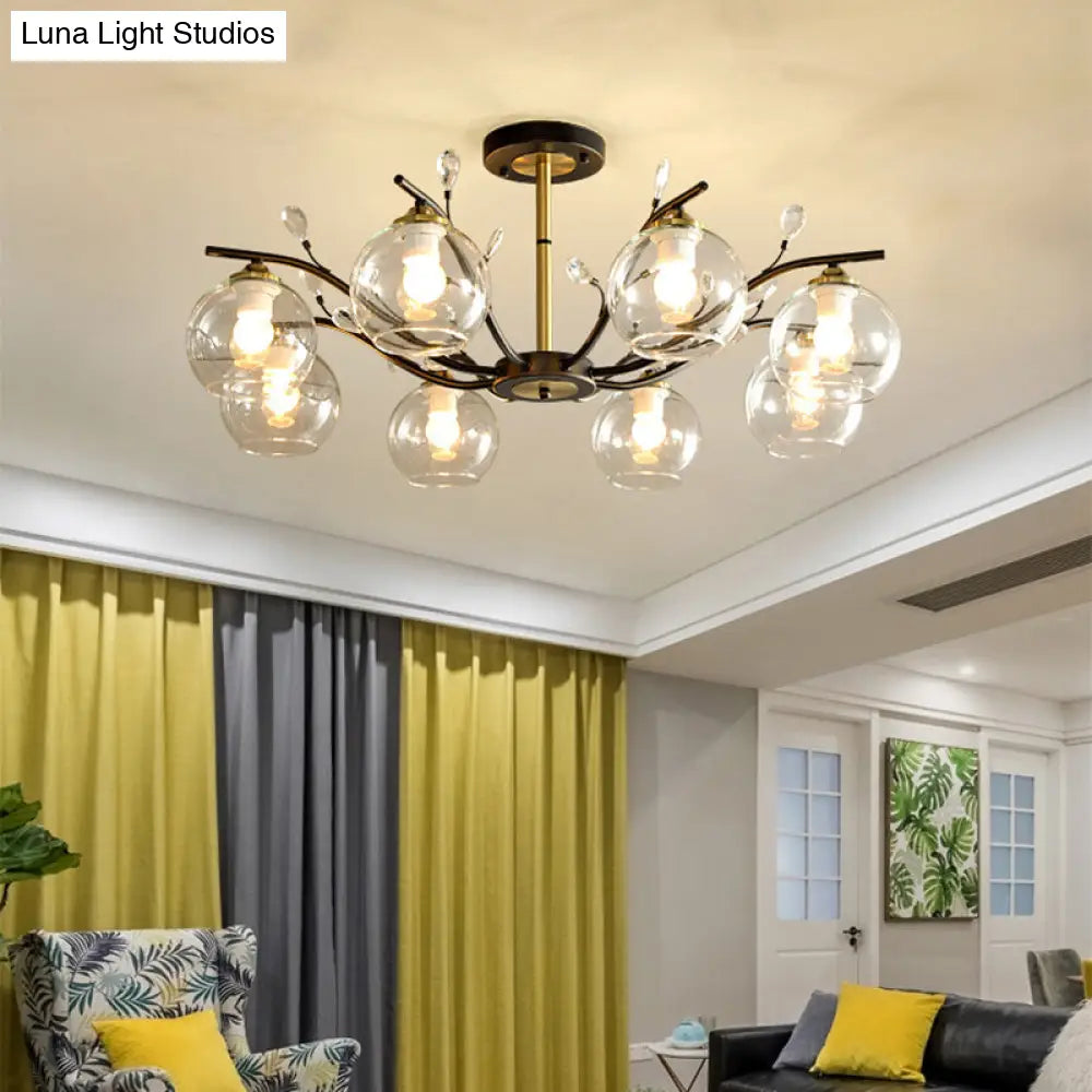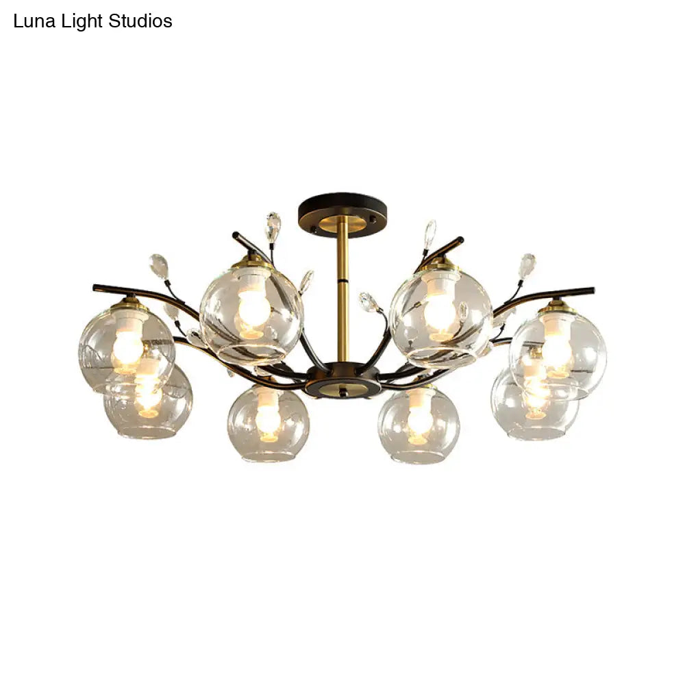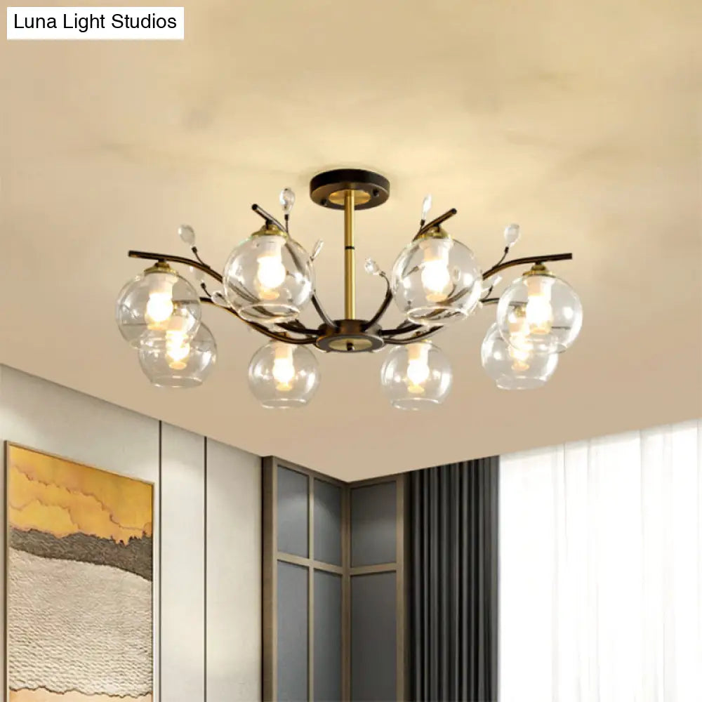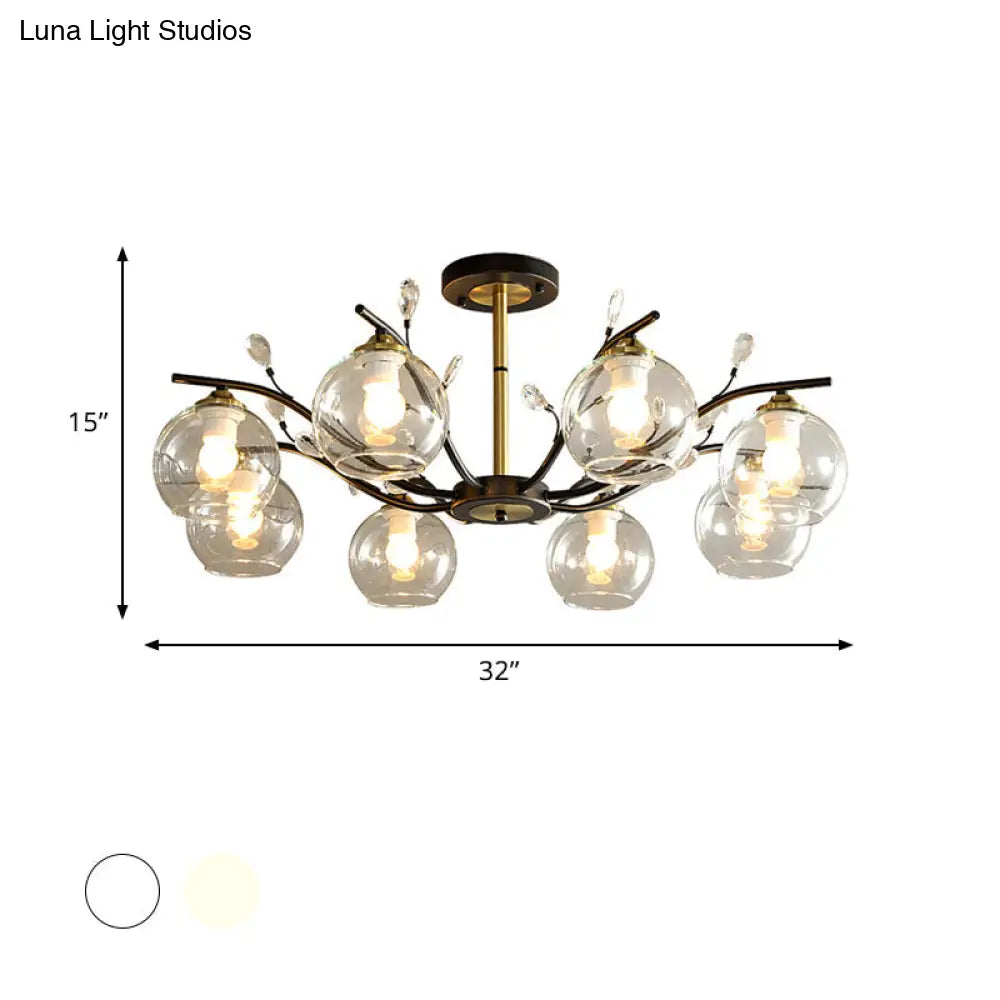 مصباح سقف مودرن نصف مسطح من ديكوربايتس™ - زجاج كريمي/شفاف - أسود وذهبي - لمسة كريستالية - 8 لمبات