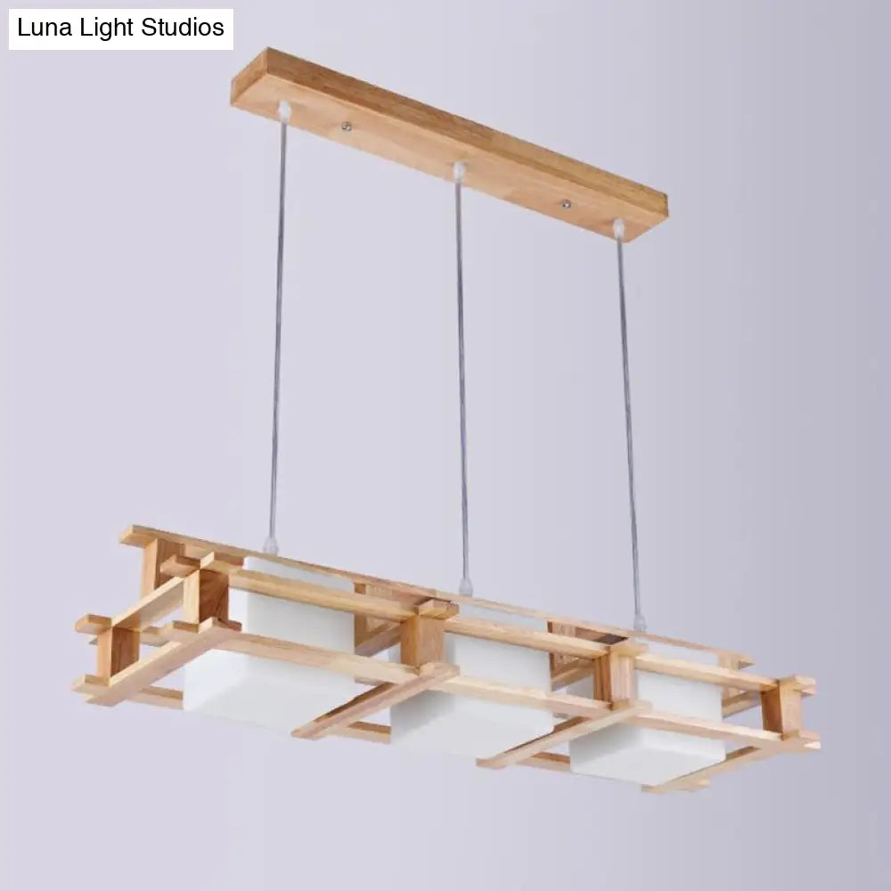 ديكوربايتس™ مصباح جزيرة زجاجي حليبي نورديك - مصباح معلق مستطيل الشكل بثلاثة مصابيح بيج مع قفص خشبي