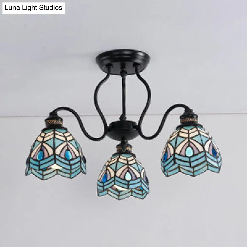 ديكوربايتس™ مصباح زجاجي ملون على شكل طاووس شبه مسطح بثلاثة مصابيح - تصميم وعاء تقليدي