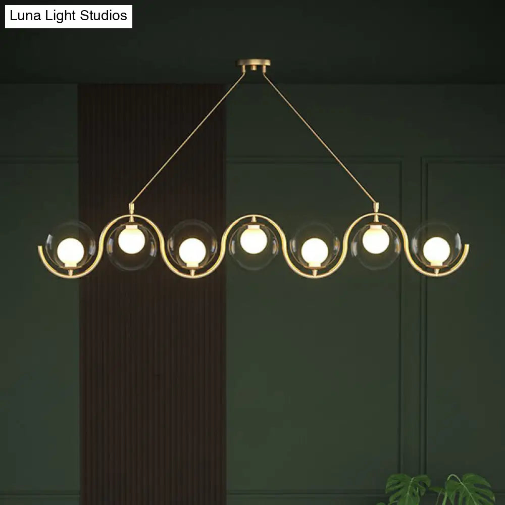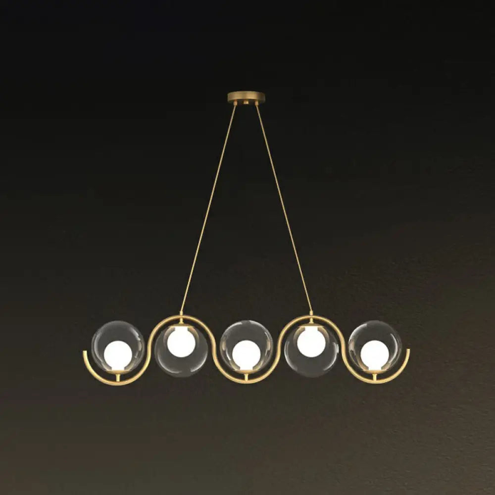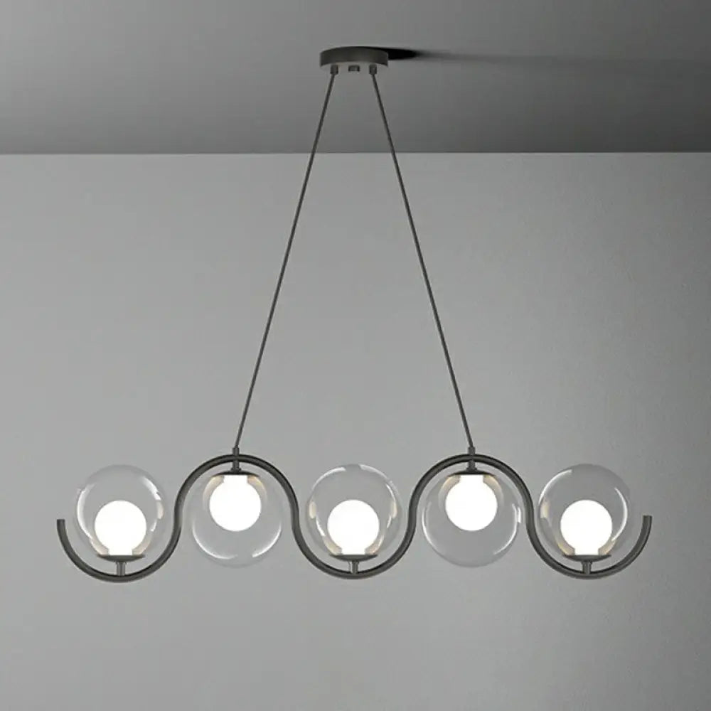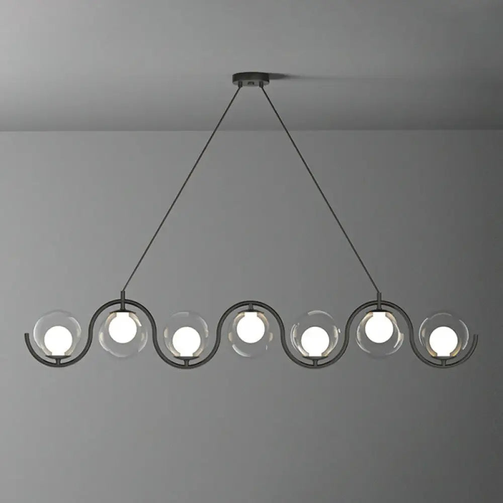 ديكوربايتس™ - وحدة إضاءة جزيرة بتصميم ما بعد الحداثة: مصباح معلق معدني متموج مع غطاء زجاجي