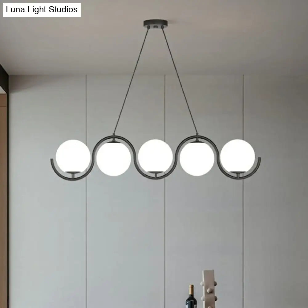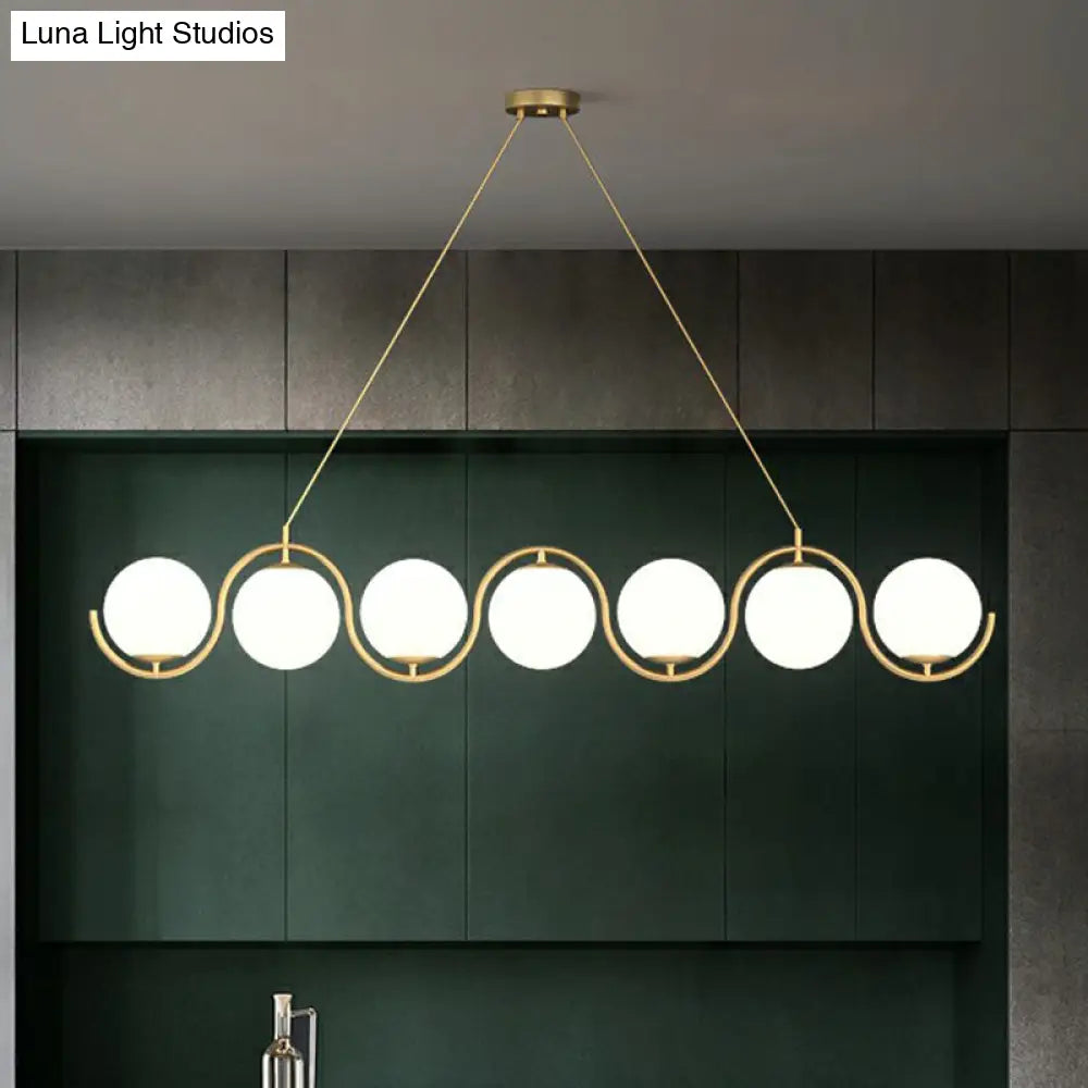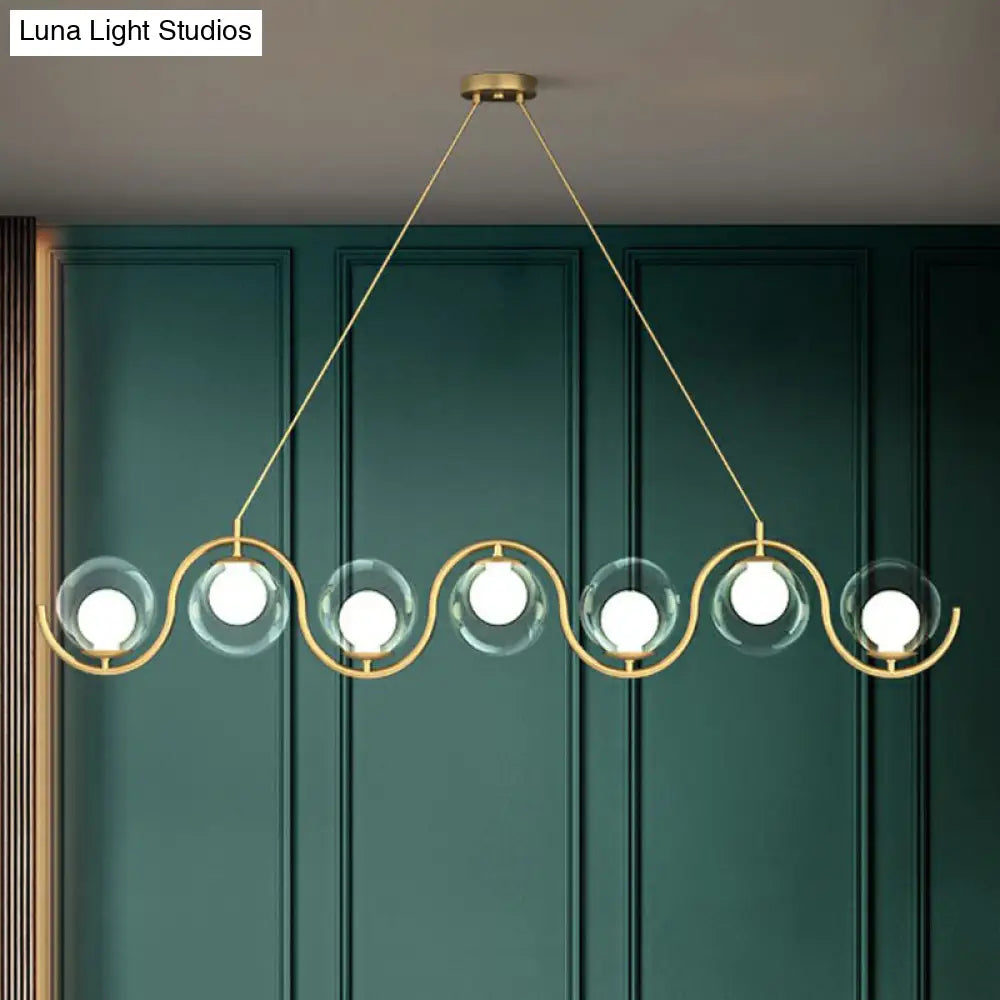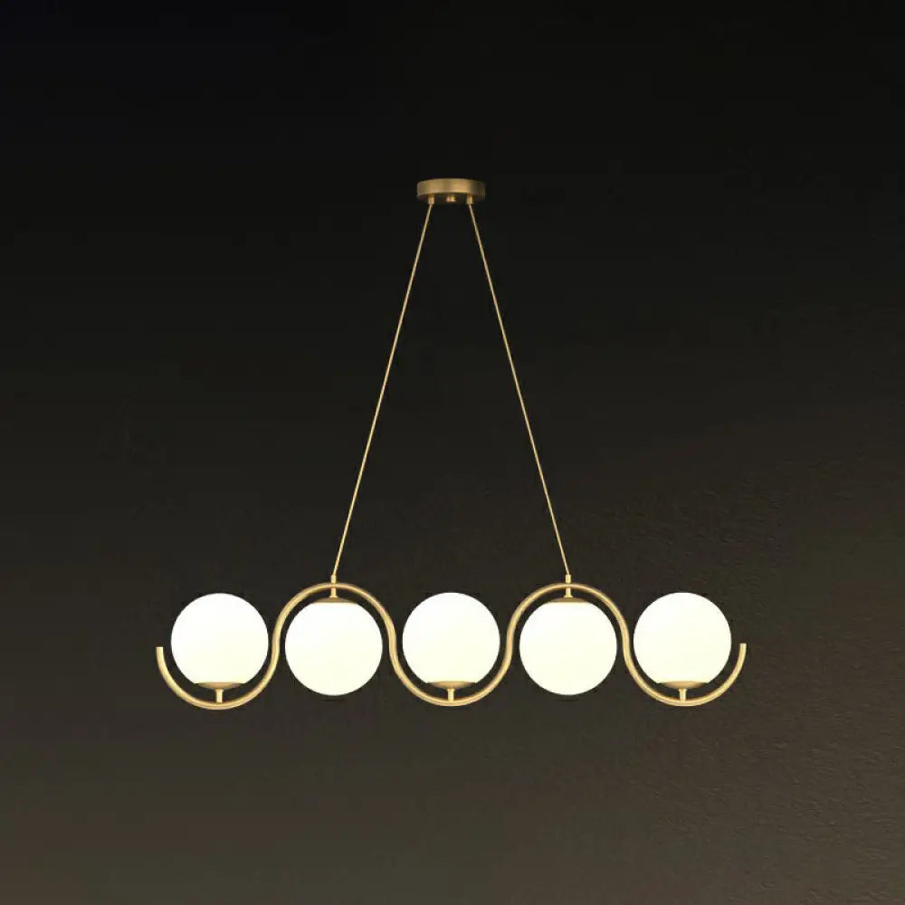 ديكوربايتس™ - وحدة إضاءة جزيرة بتصميم ما بعد الحداثة: مصباح معلق معدني متموج مع غطاء زجاجي
