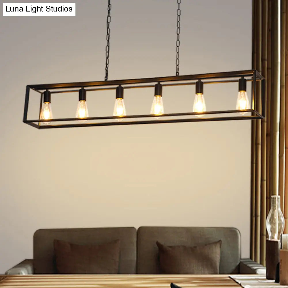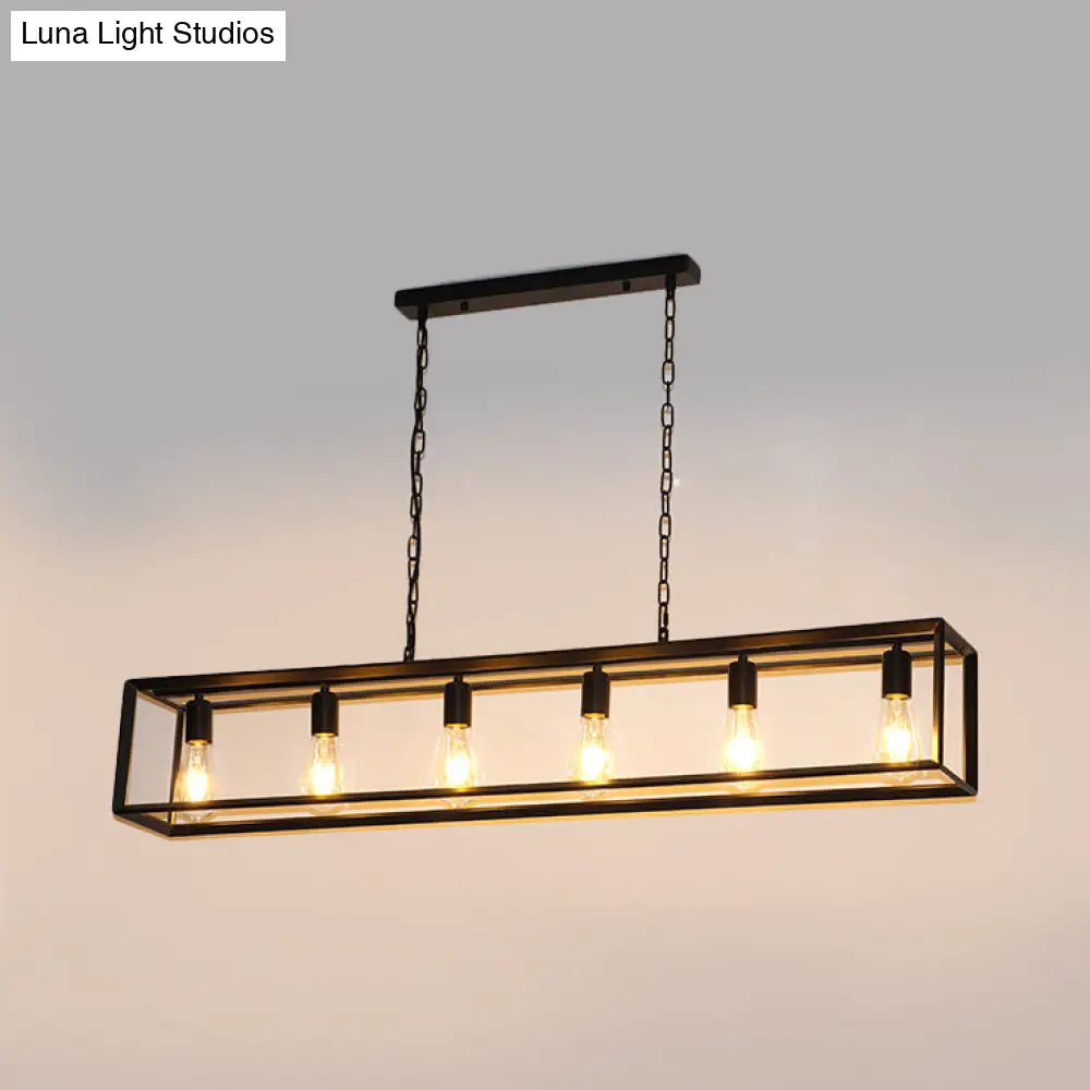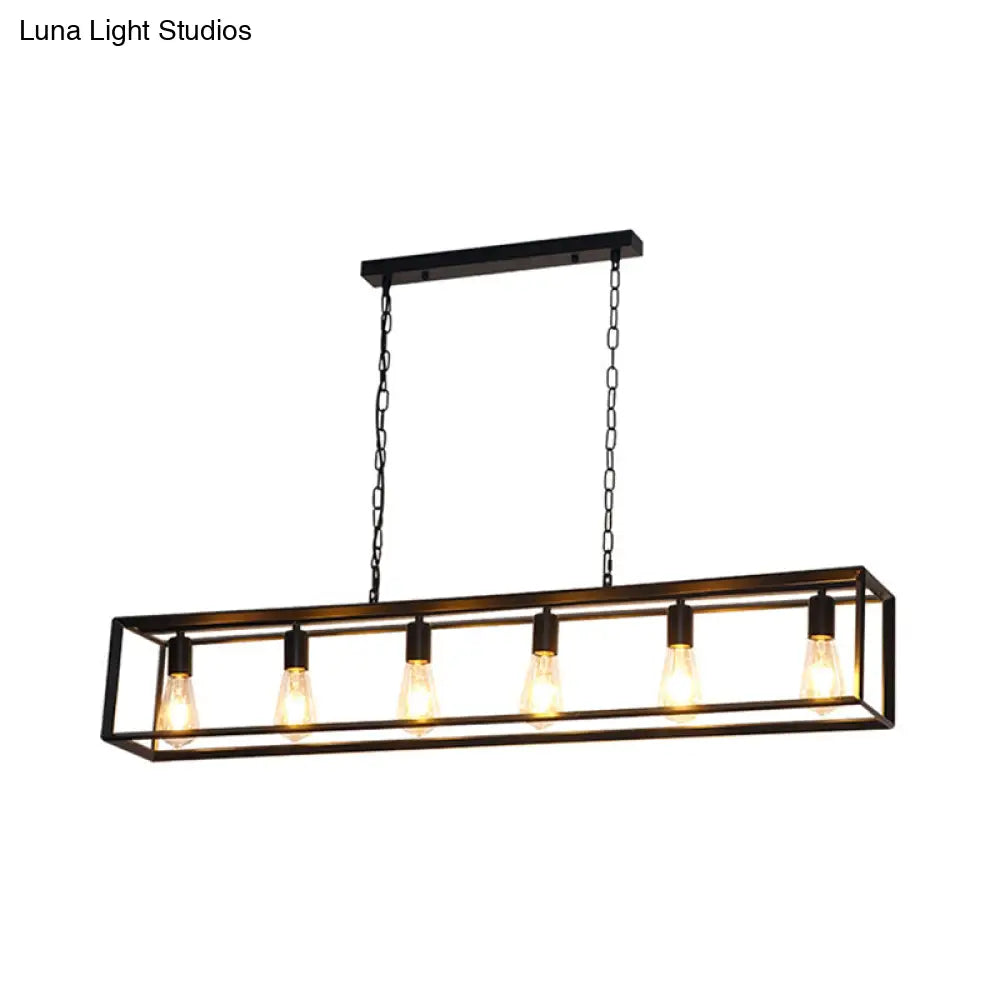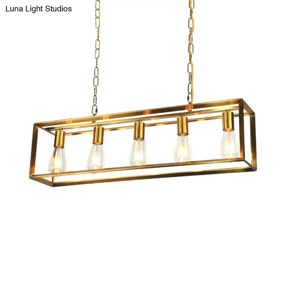 مصباح جزيرة مستطيل من DecorBites™: أسود/نحاسي، معدن كلاسيكي، 5/6 لمبات - مثالي لإضاءة سقف غرفة الطعام