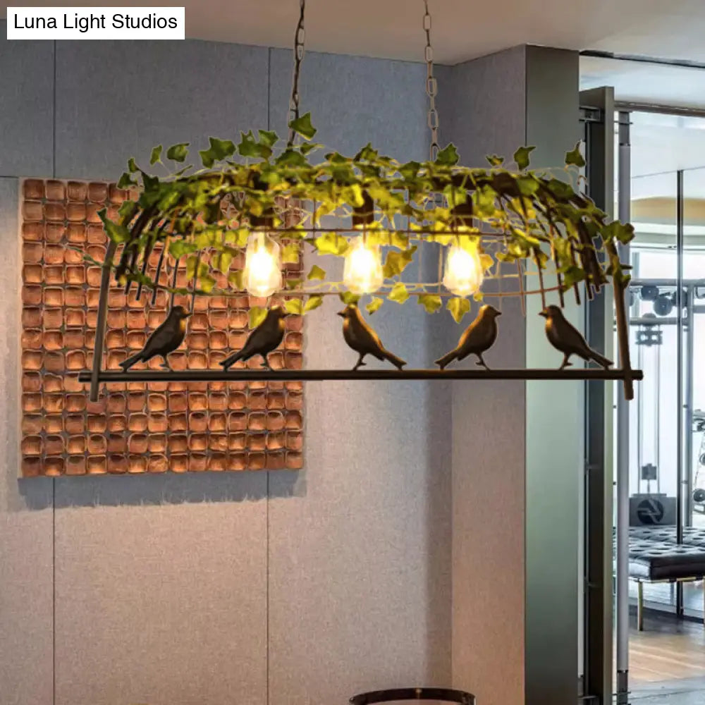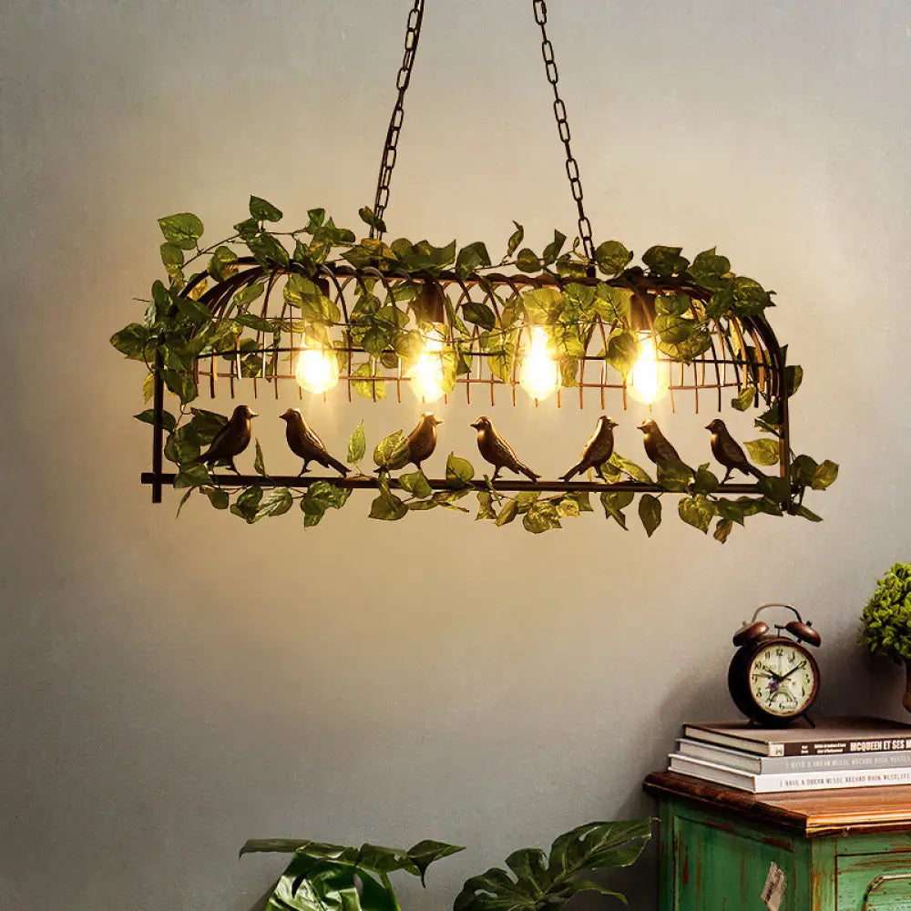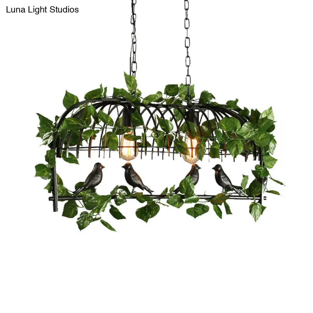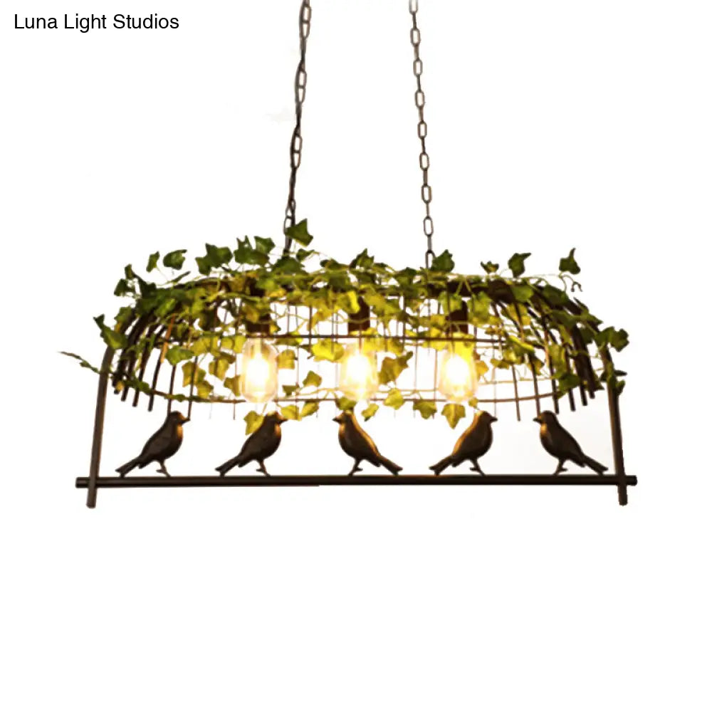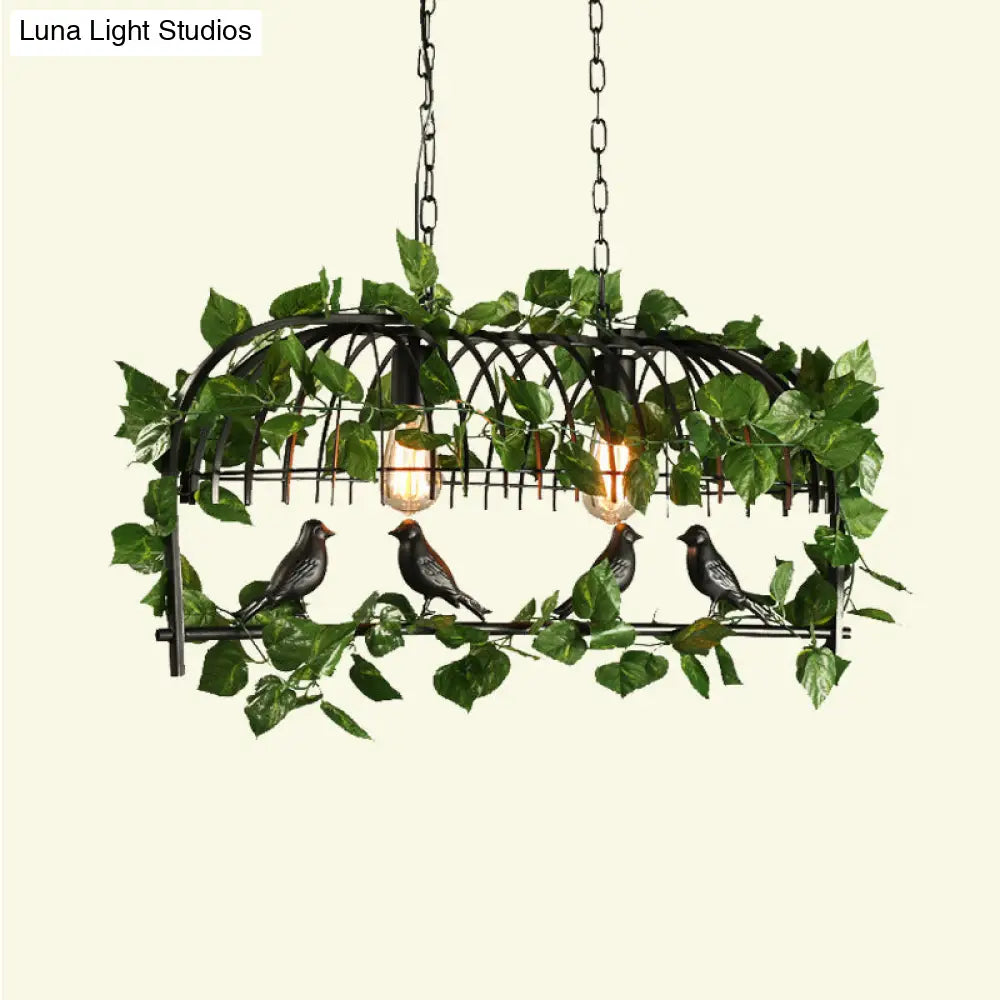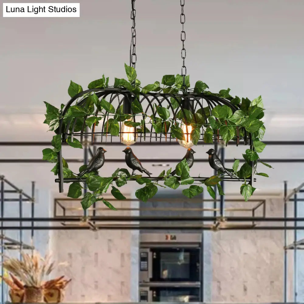 ديكوربايتس™ مصباح جزيرة على شكل قفص طيور عتيق - مصباح سقف معدني LED على شكل نبات باللون الأسود، مع 2/3/4 لمبات