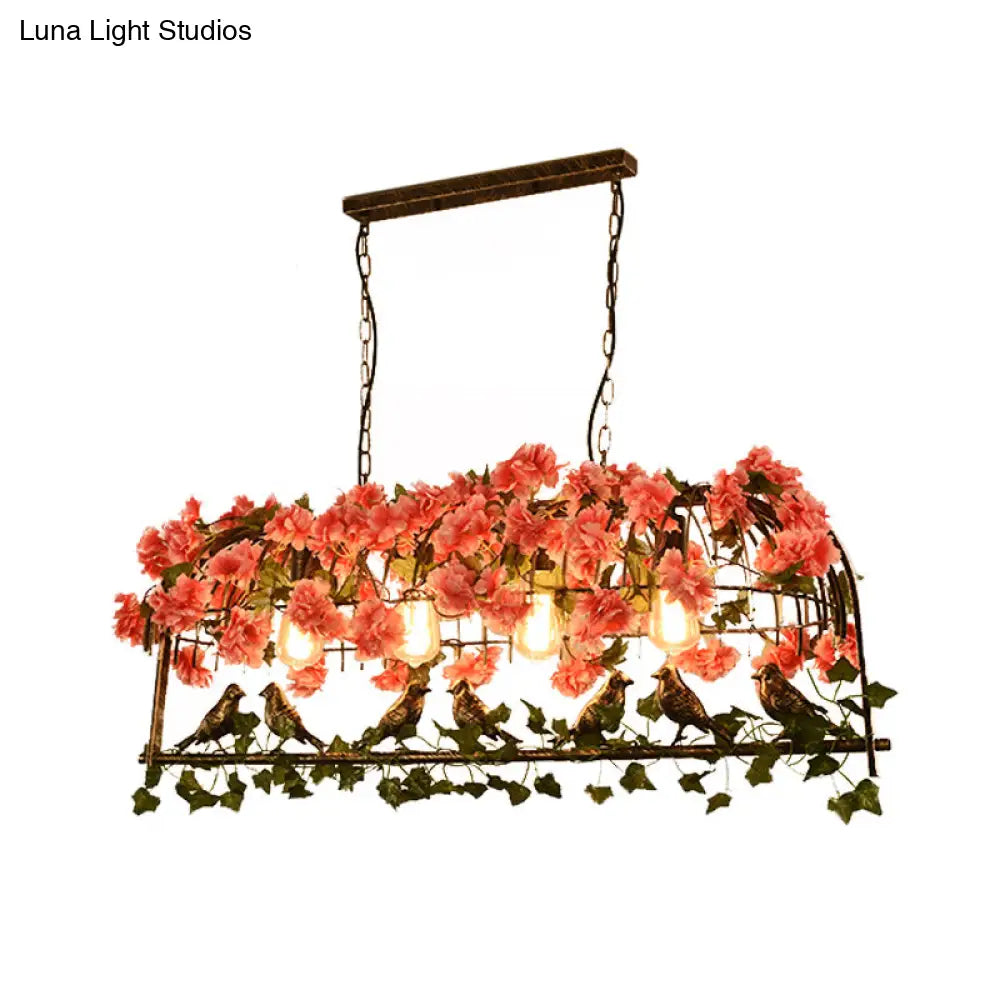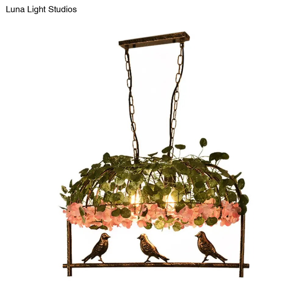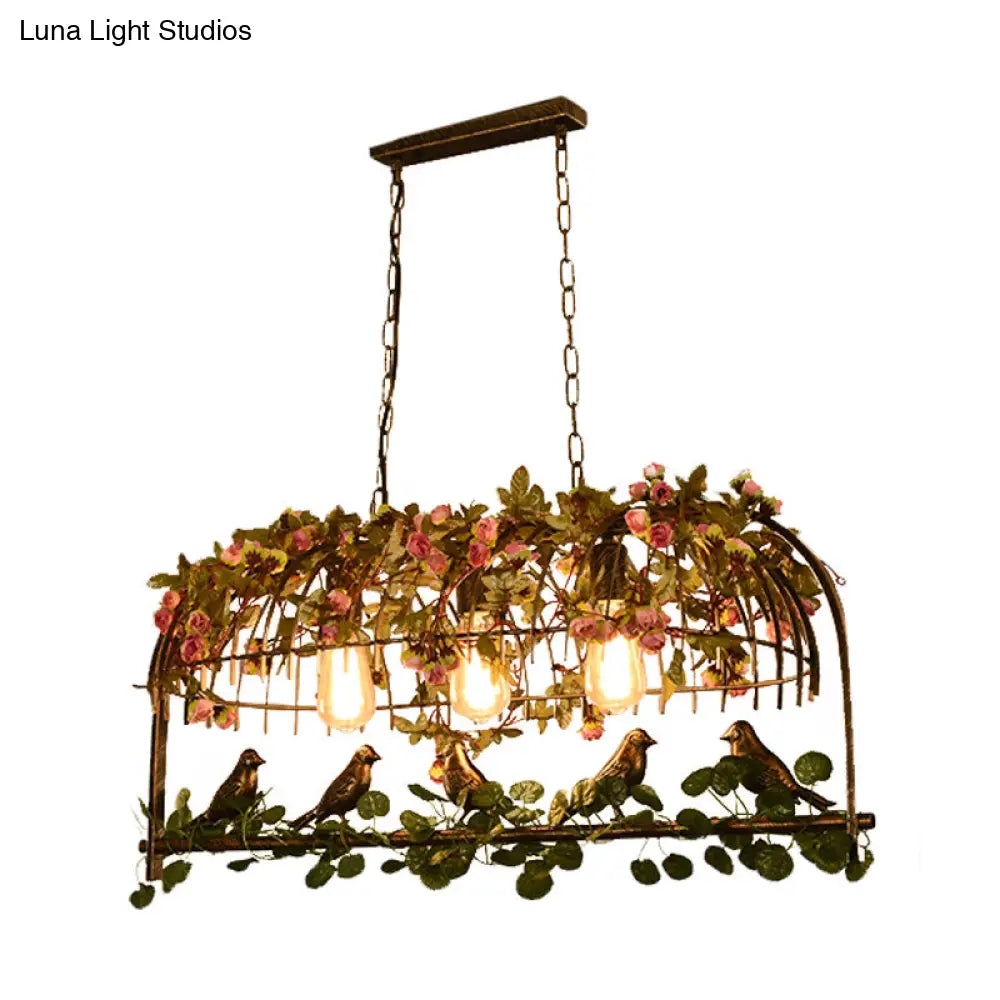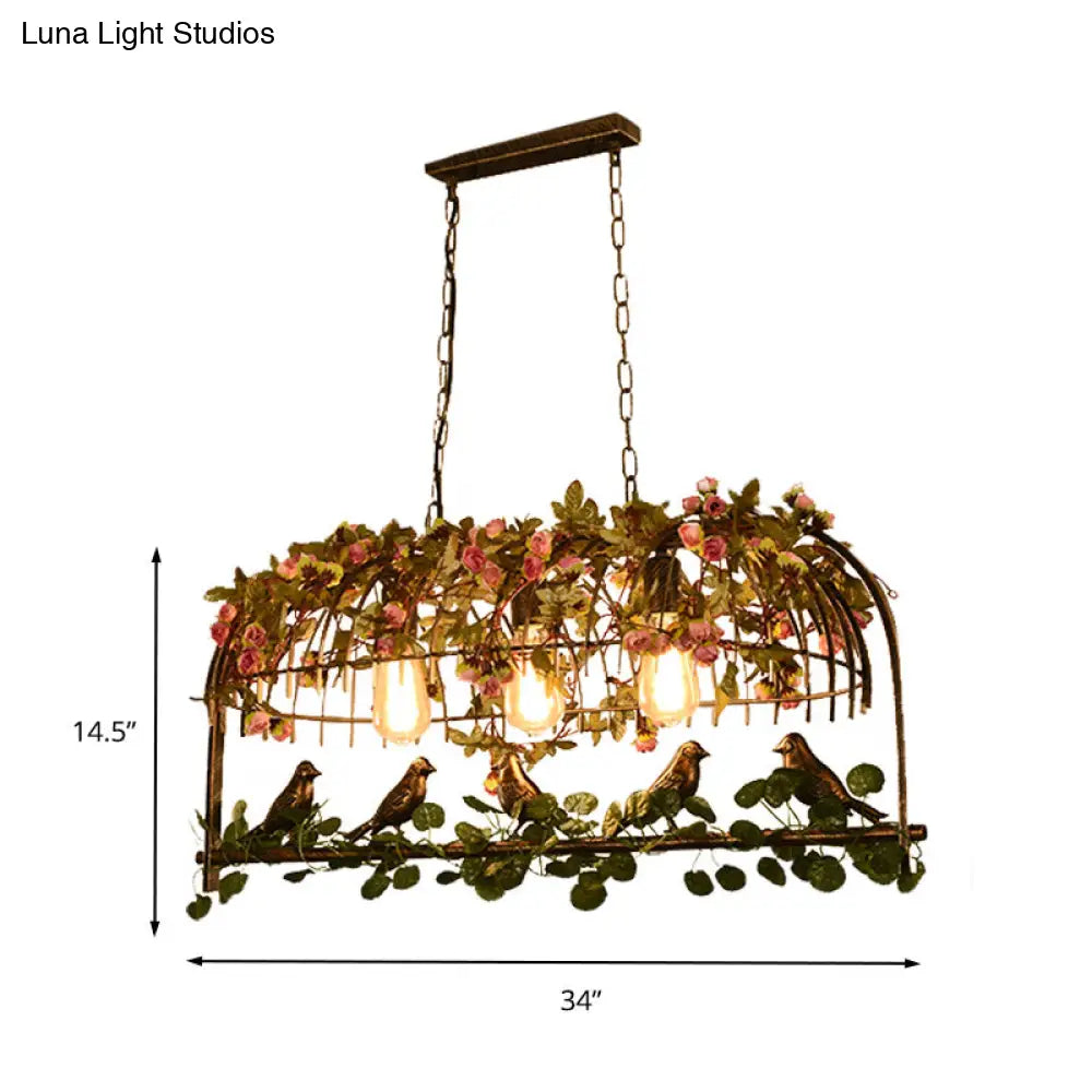 ديكوربايتس™ مصباح سقف معدني بتصميم قفص طيور عتيق مع ديكور زهور - لمسة نهائية من النحاس، رأسان/ثلاثة/أربعة - مثالي للمطاعم والجزر