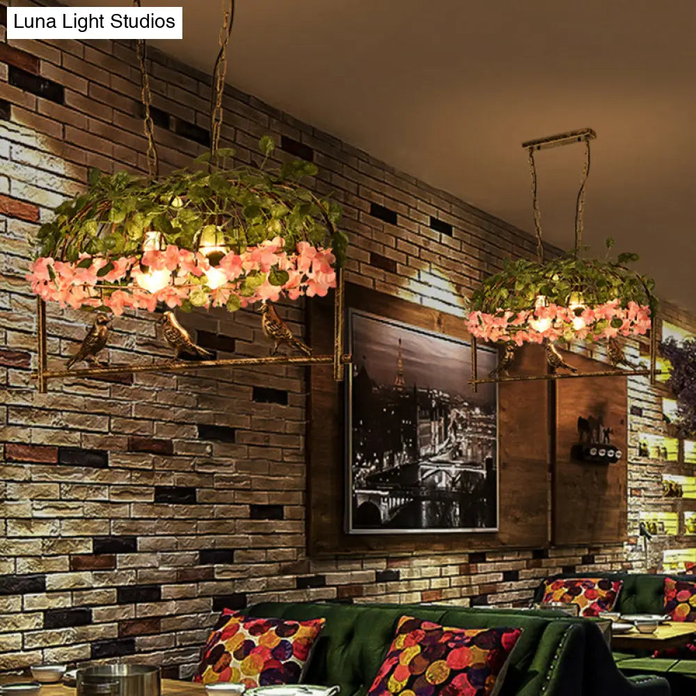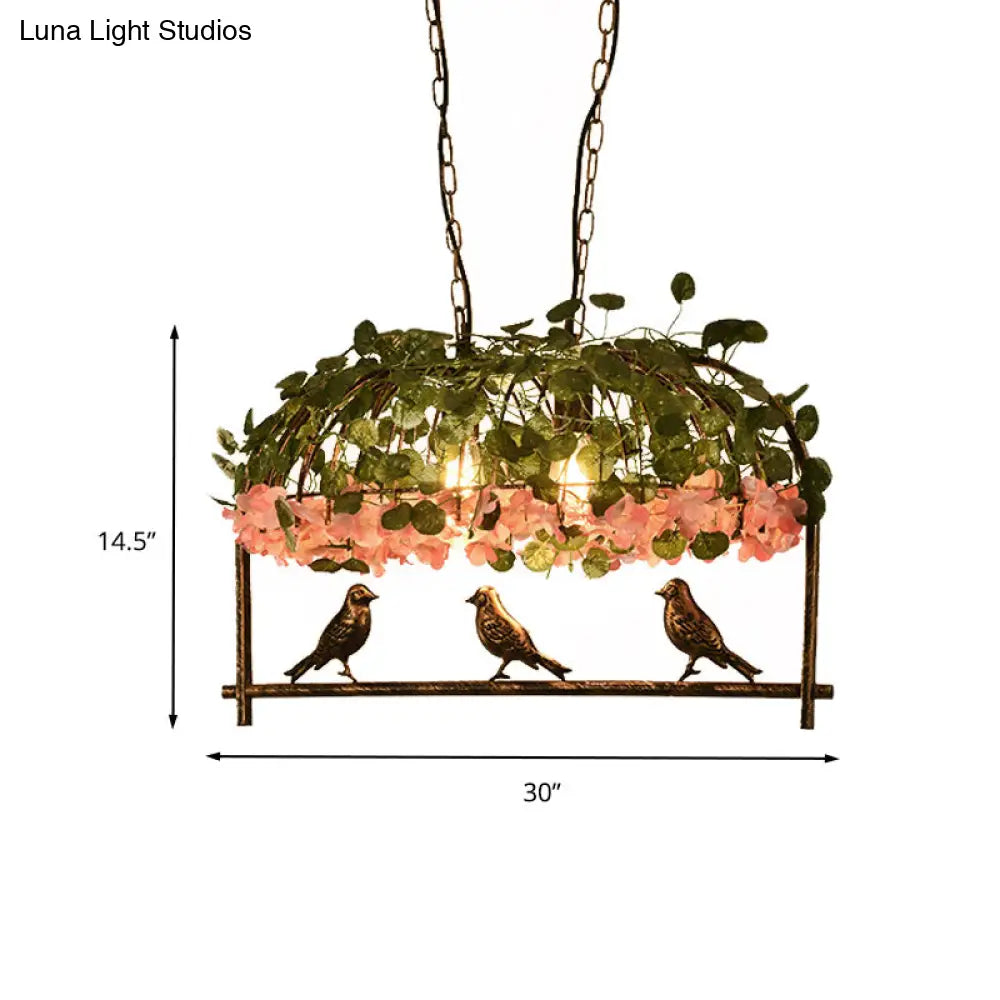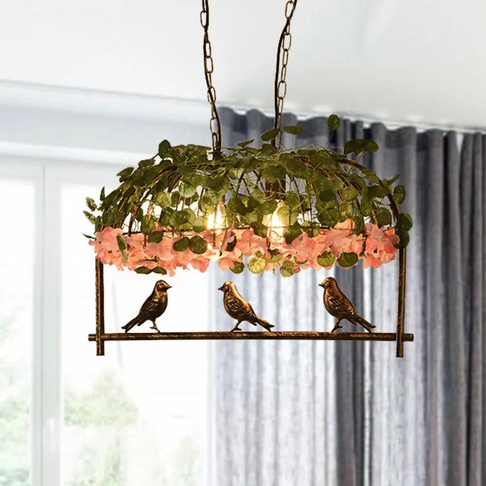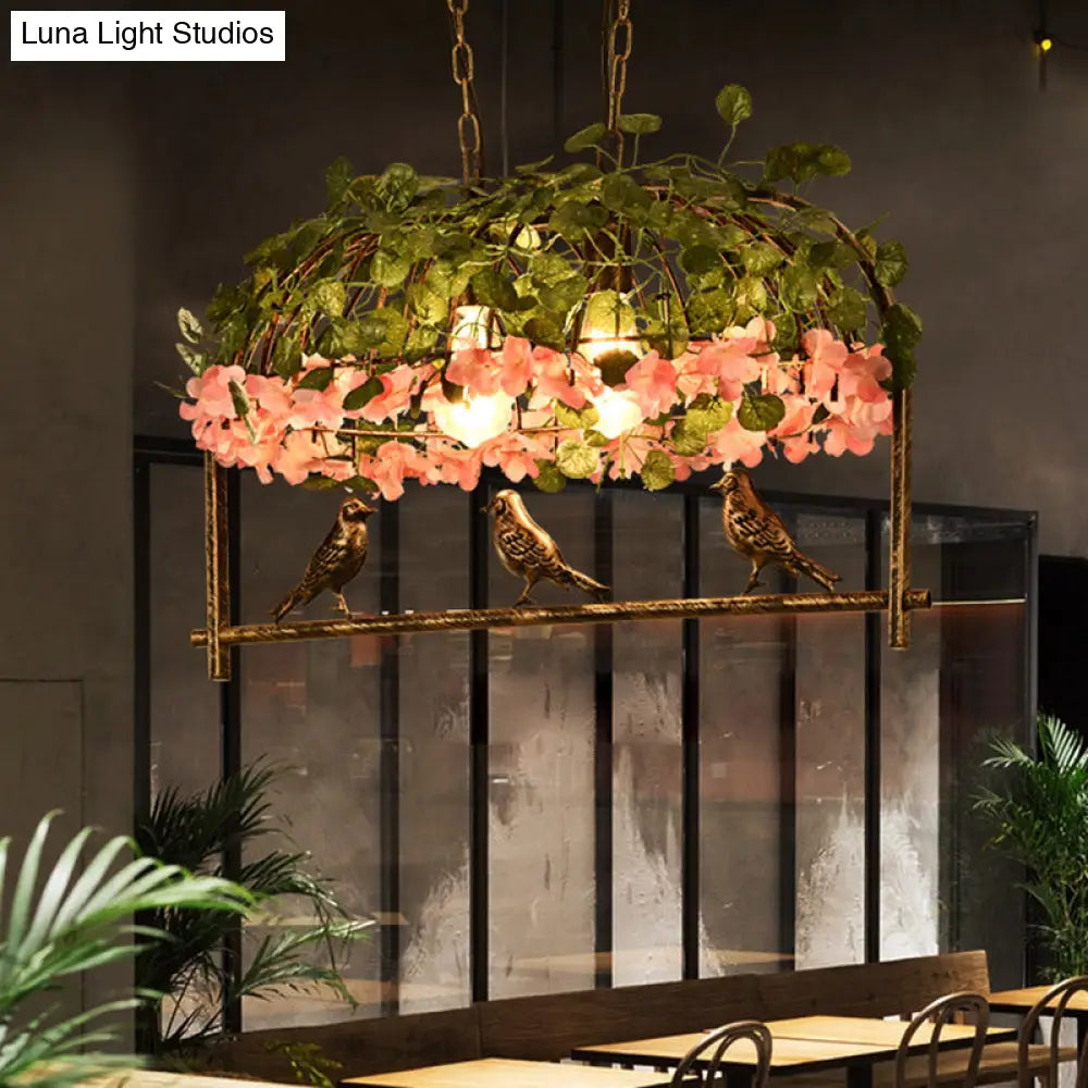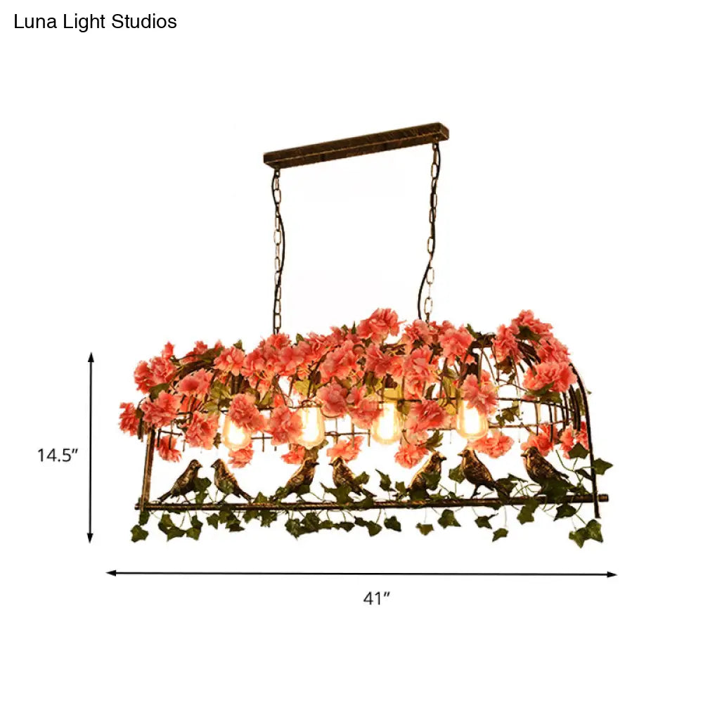 ديكوربايتس™ مصباح سقف معدني بتصميم قفص طيور عتيق مع ديكور زهور - لمسة نهائية من النحاس، رأسان/ثلاثة/أربعة - مثالي للمطاعم والجزر