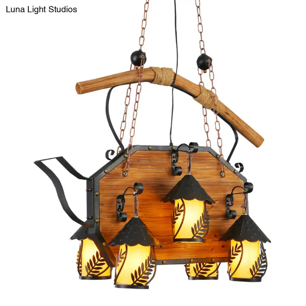 ديكوربايتس™ مصباح جزيرة على شكل سفينة عتيق - وحدة إضاءة معلقة معدنية سوداء للمطاعم - 6 مصابيح - غطاء من القماش الأبيض/زجاج شفاف