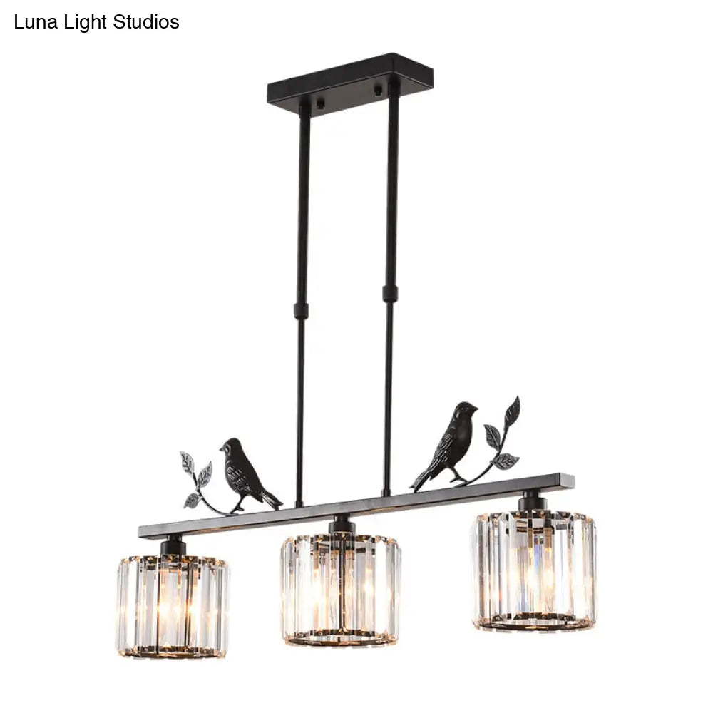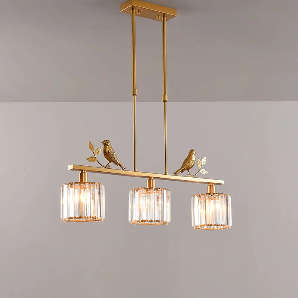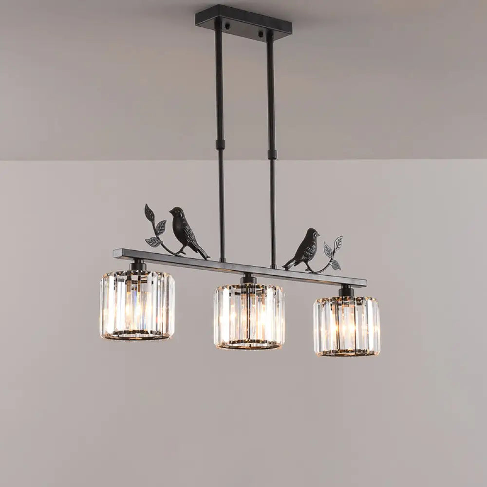 ديكوربايتس™ إضاءة جزيرة كريستالية أسطوانية بثلاثة رؤوس لغرفة الطعام، مع ديكور على شكل طيور وأوراق شجر