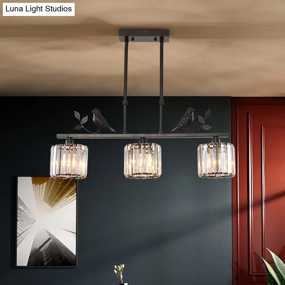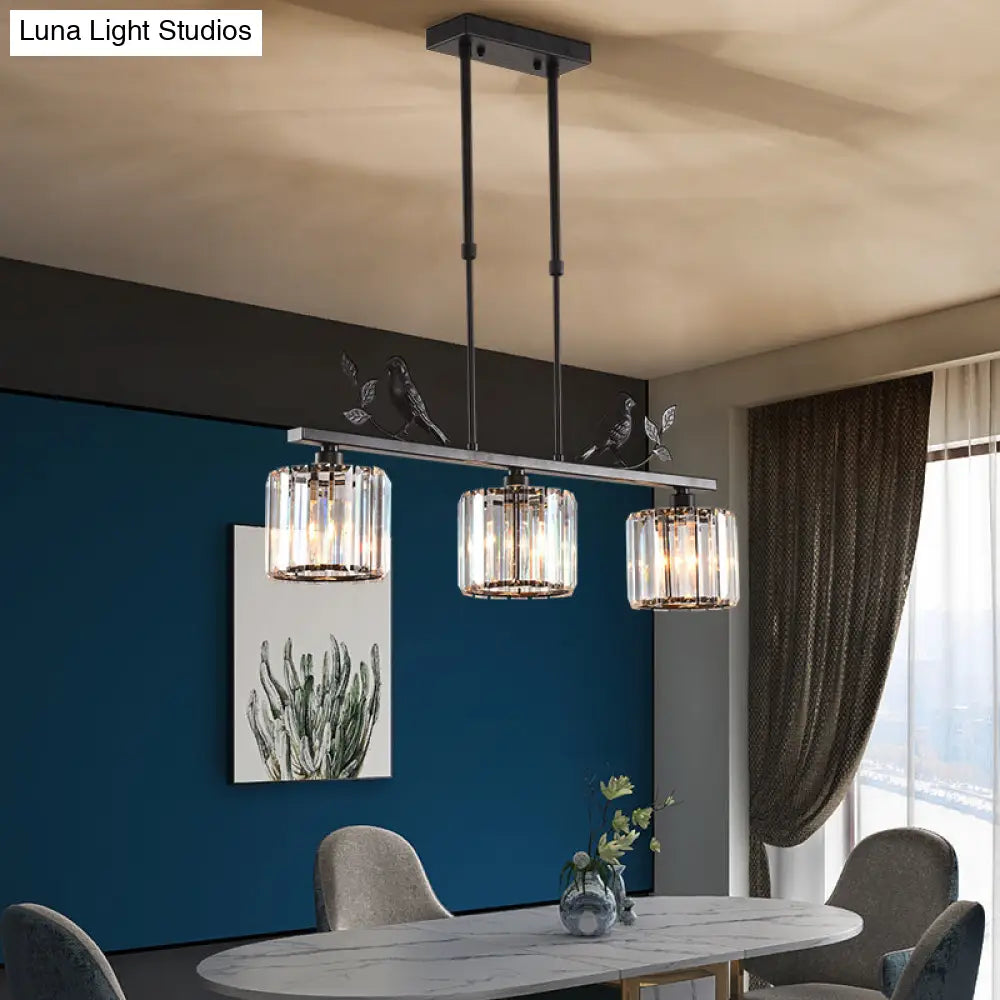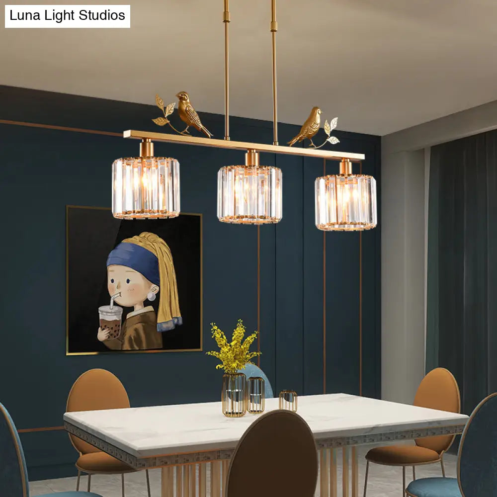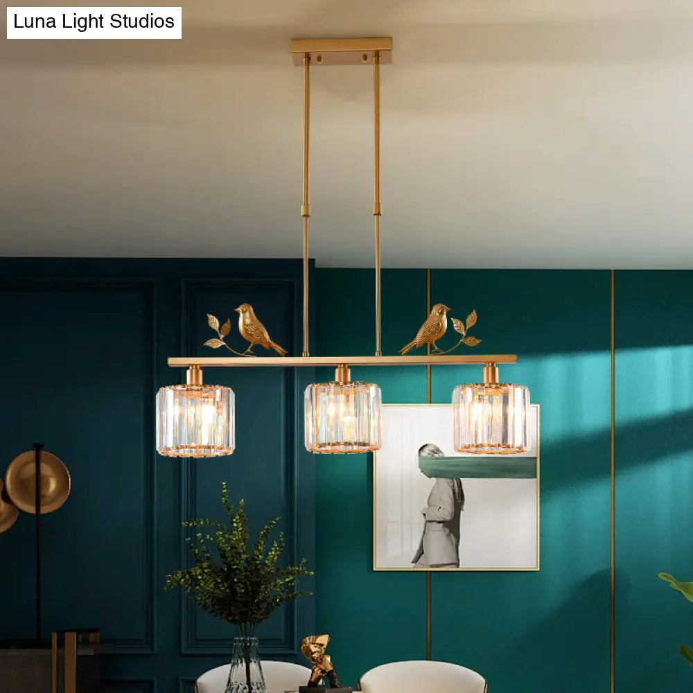 ديكوربايتس™ إضاءة جزيرة كريستالية أسطوانية بثلاثة رؤوس لغرفة الطعام، مع ديكور على شكل طيور وأوراق شجر