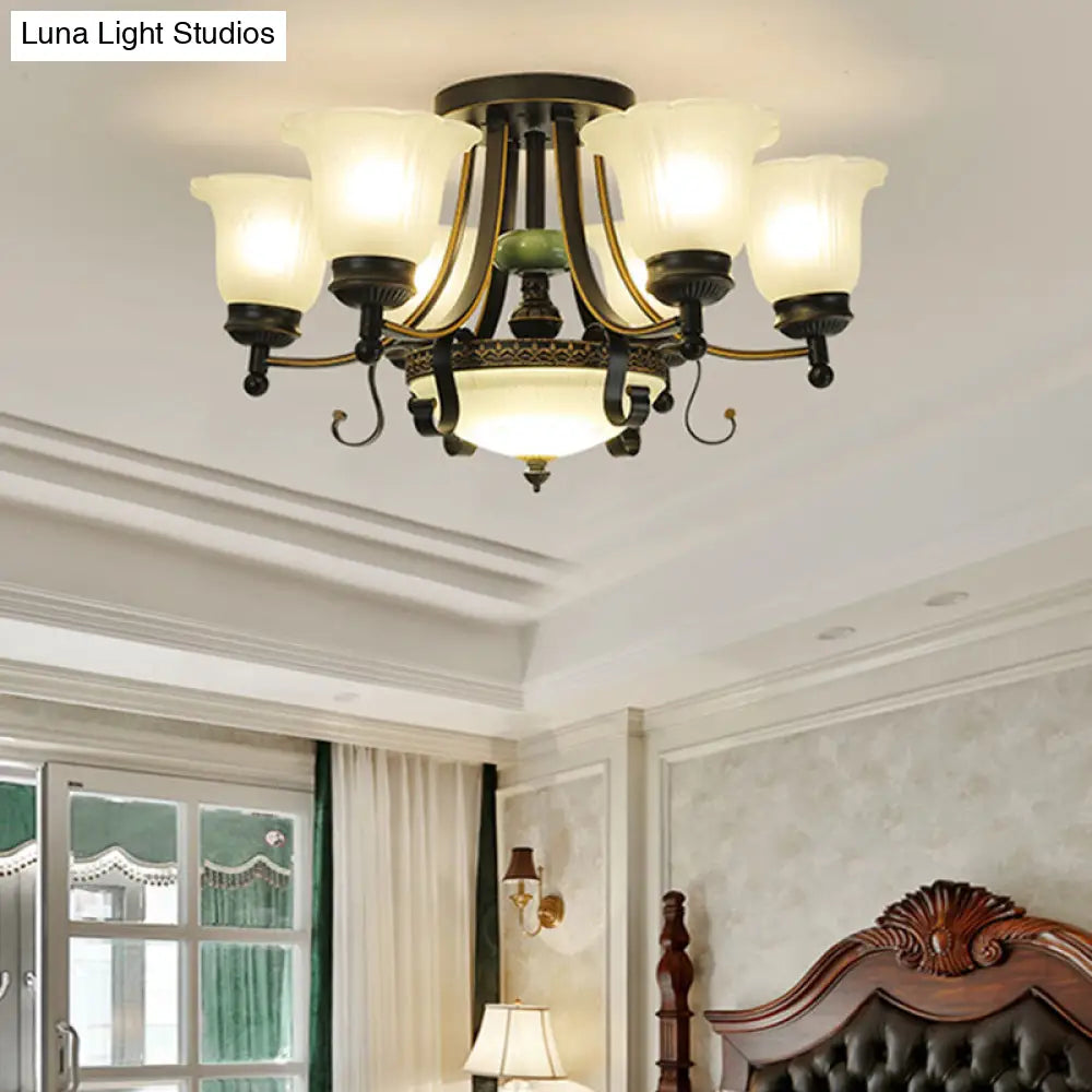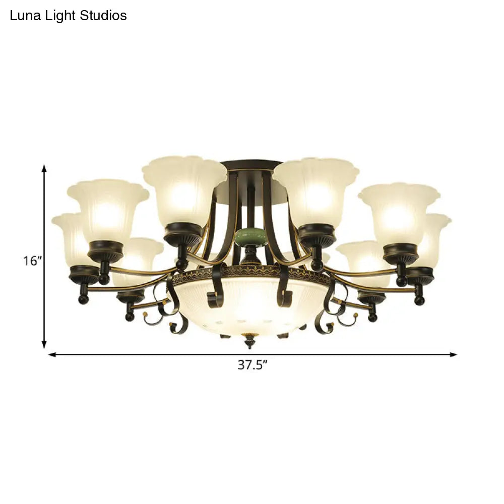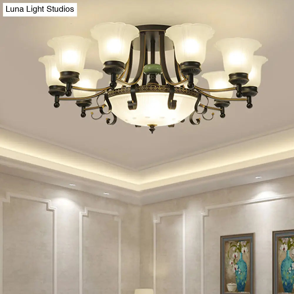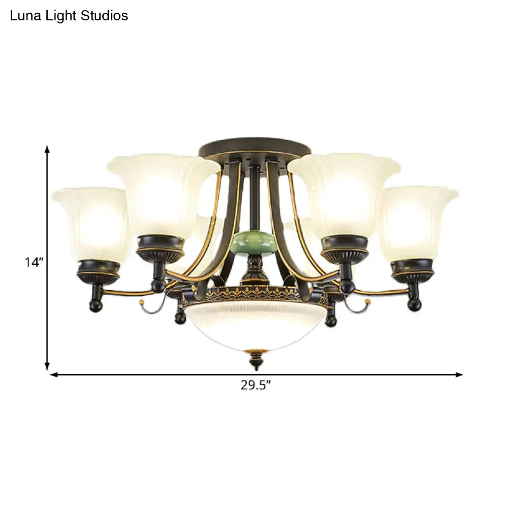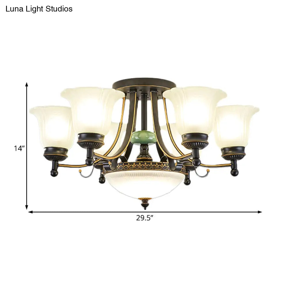 ديكوربايتس™ مصباح سقف على شكل زهرة من زجاج الأوبال الريفي مع حامل شبه مسطح - 9/11/13 مصابيح لغرفة المعيشة