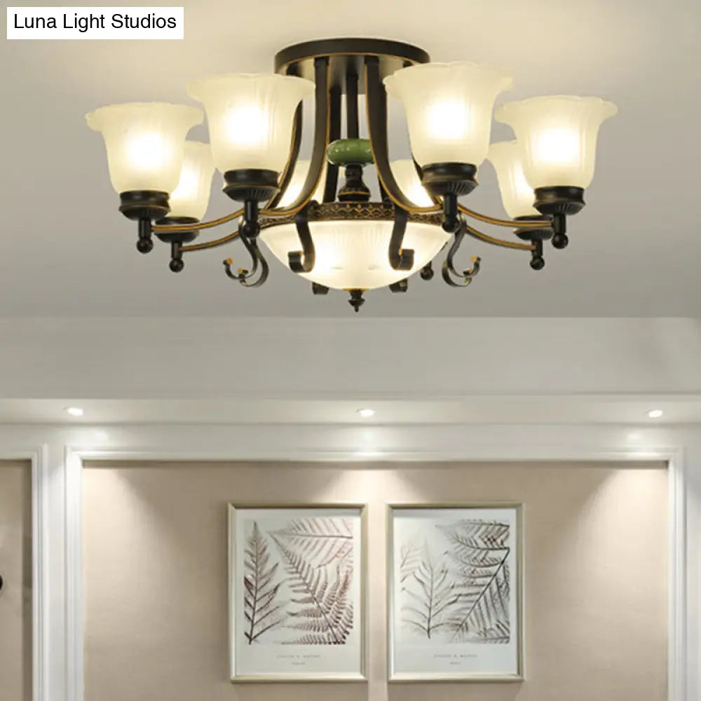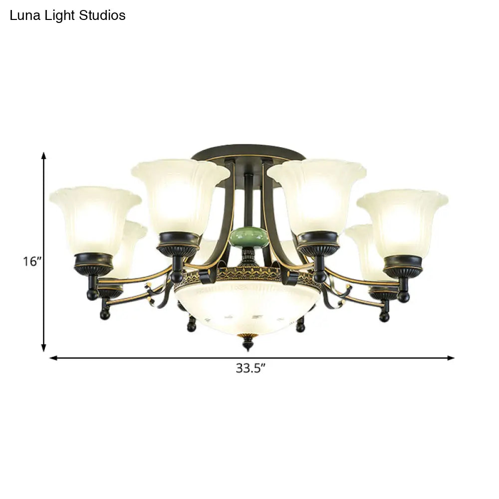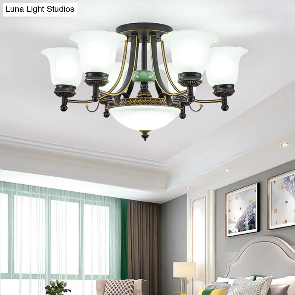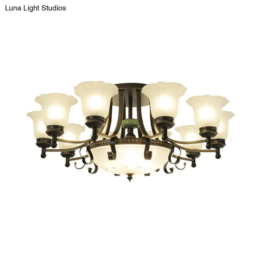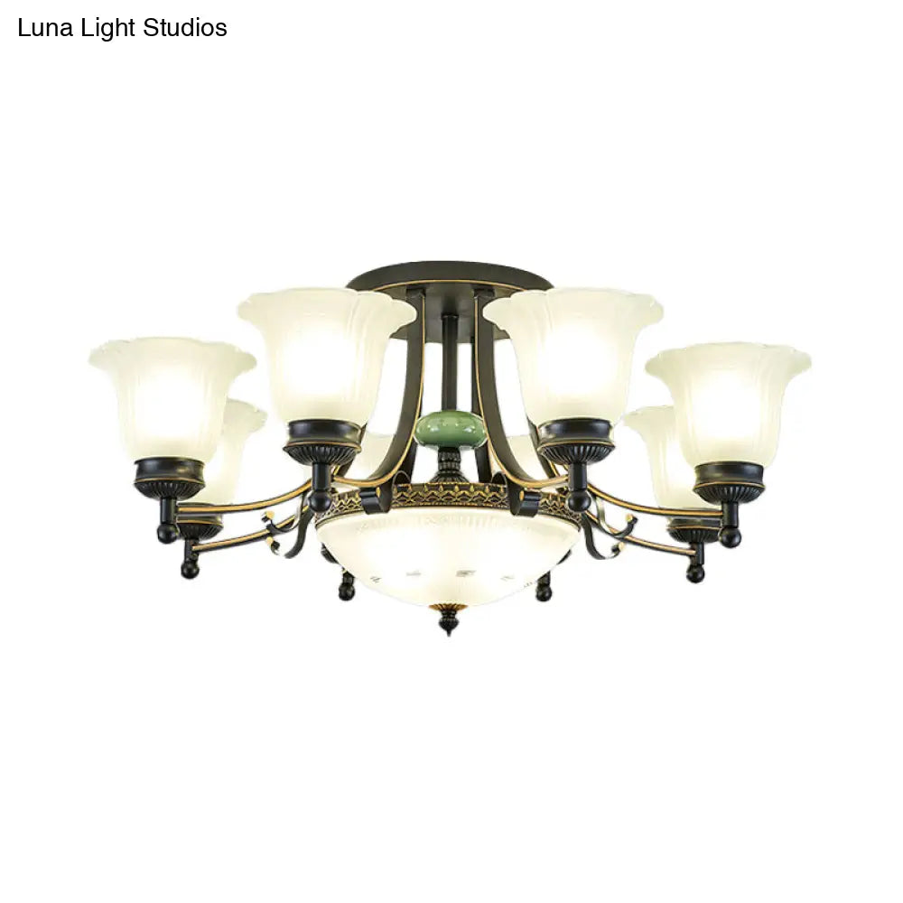 ديكوربايتس™ مصباح سقف على شكل زهرة من زجاج الأوبال الريفي مع حامل شبه مسطح - 9/11/13 مصابيح لغرفة المعيشة