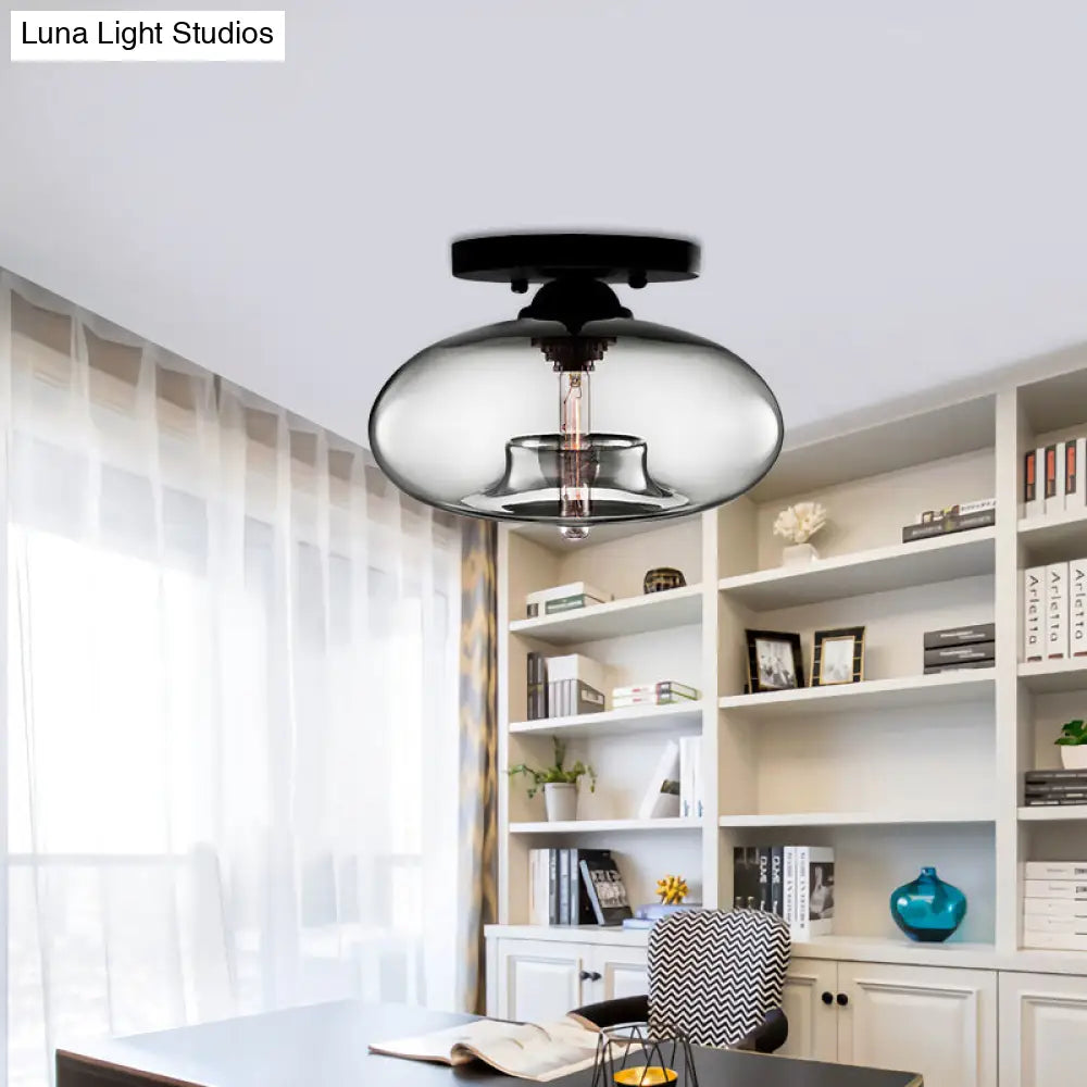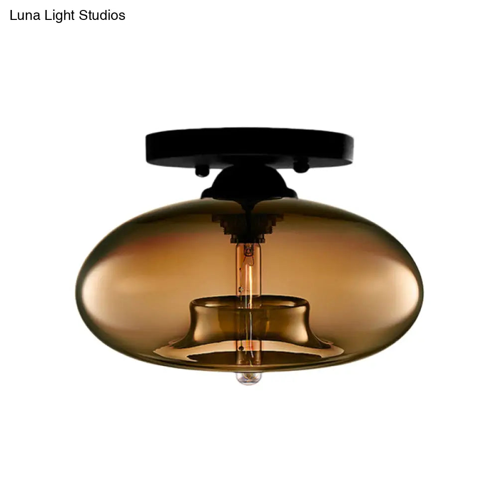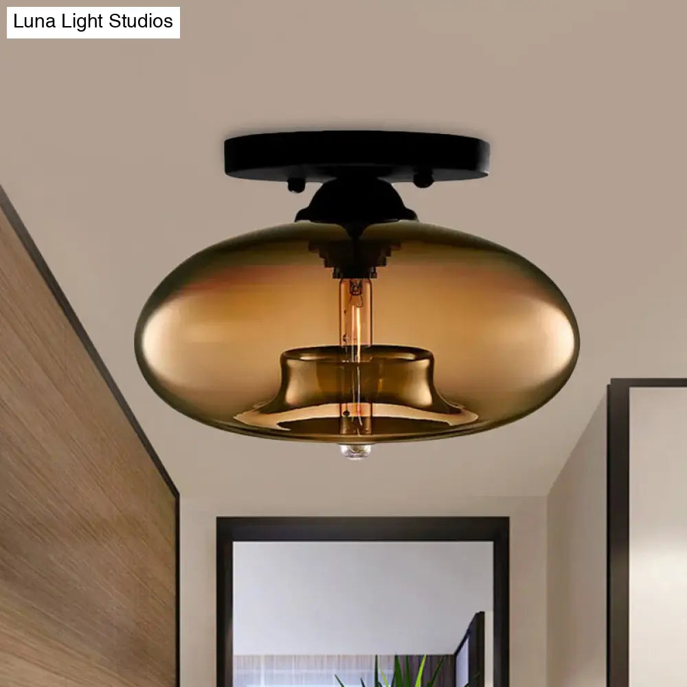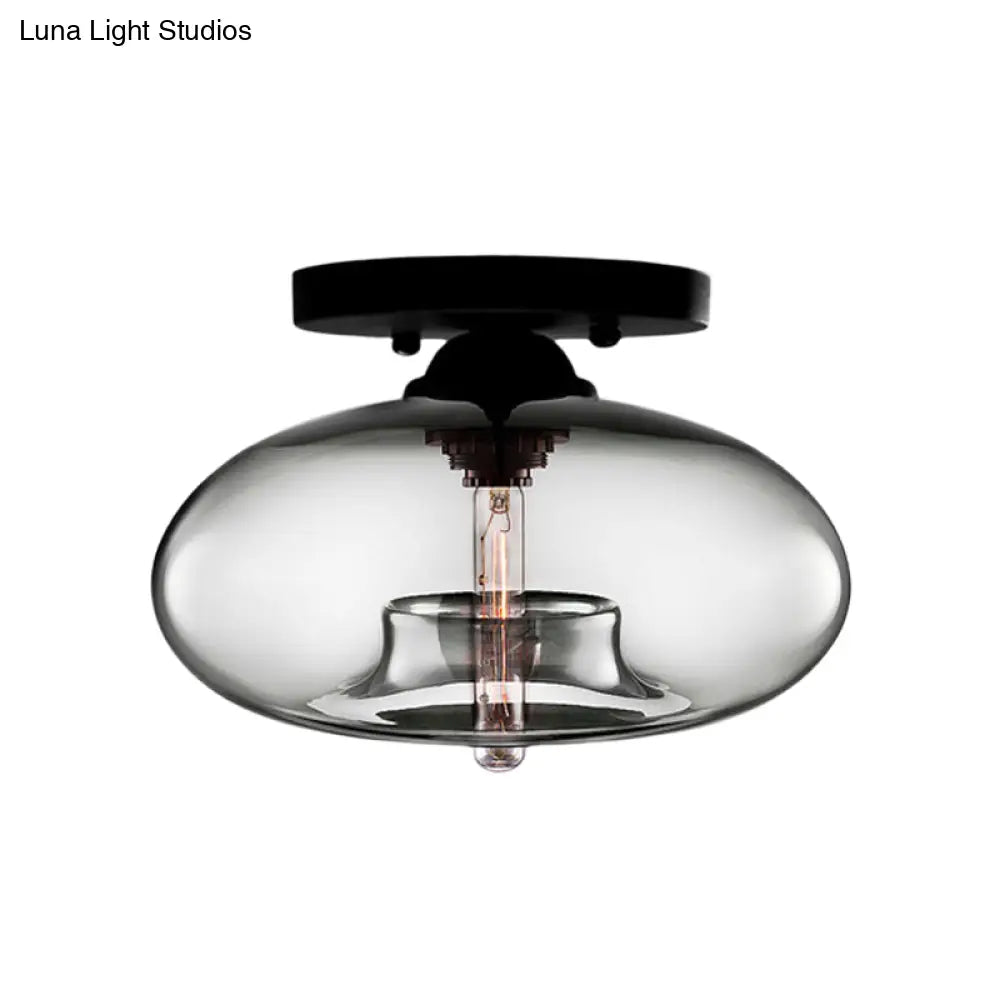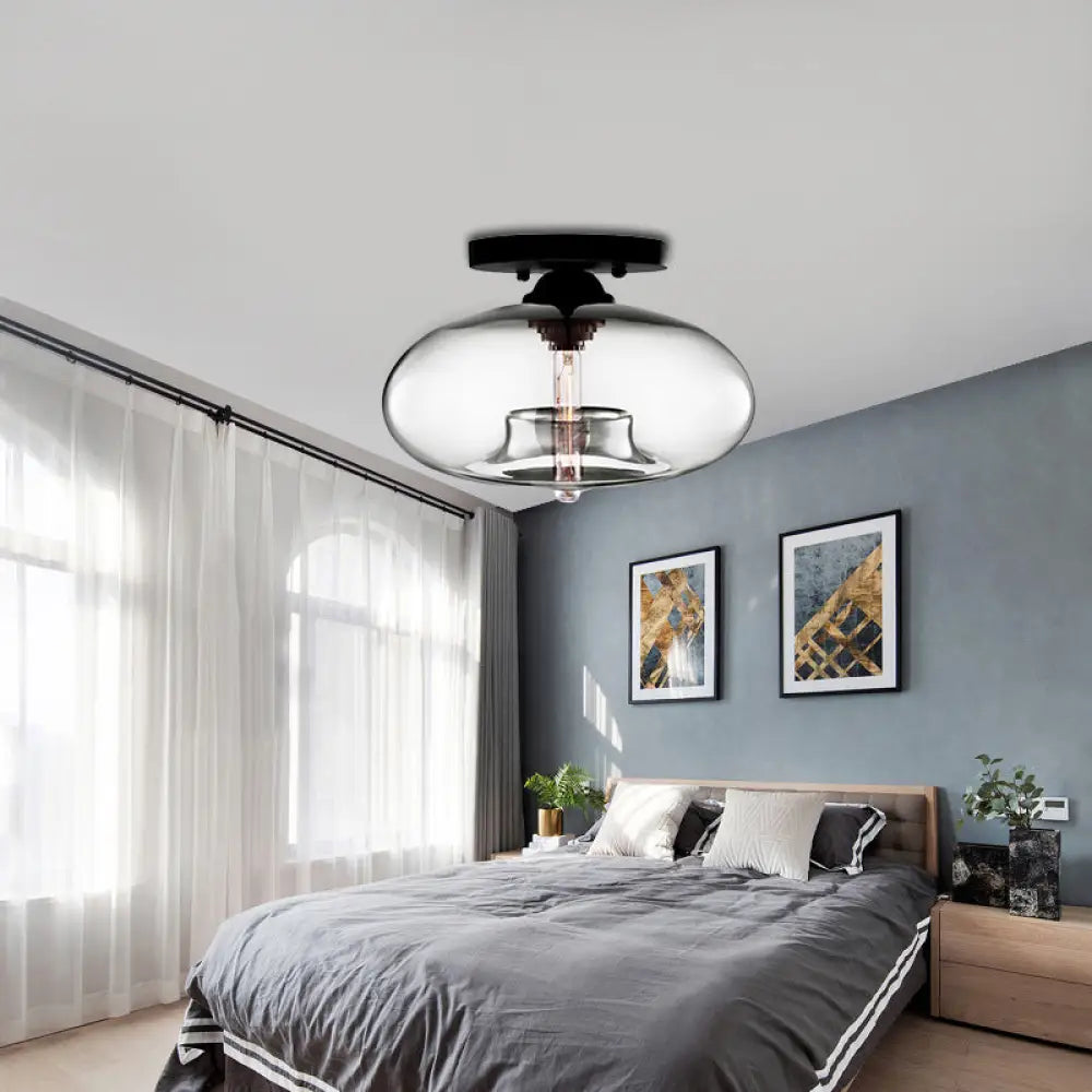 مصباح ديكوربايتس™ البيضاوي الزجاجي البسيط ذو التركيب المدمج مع مصباح واحد - تركيبات سقف شفافة/كهرمانية/دخانية للممر