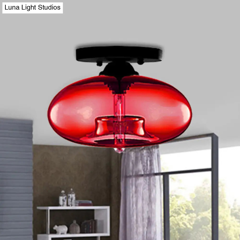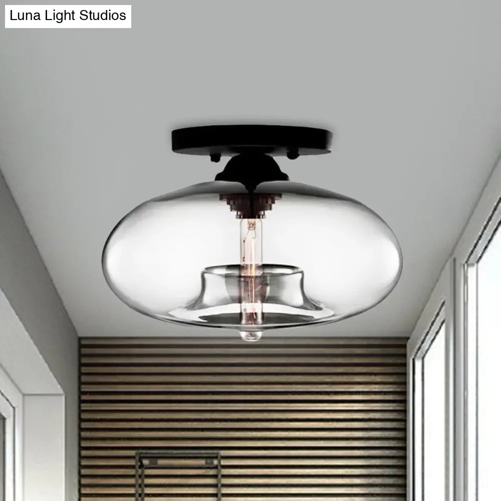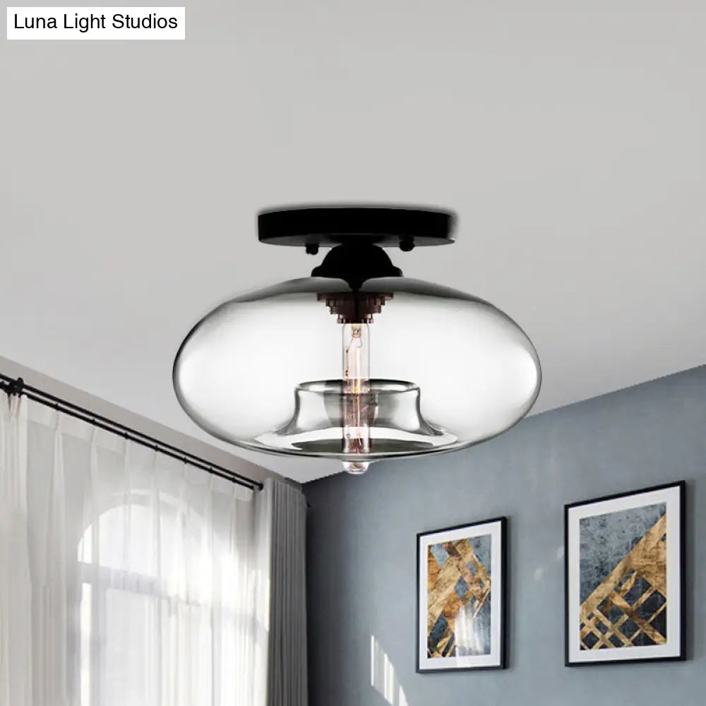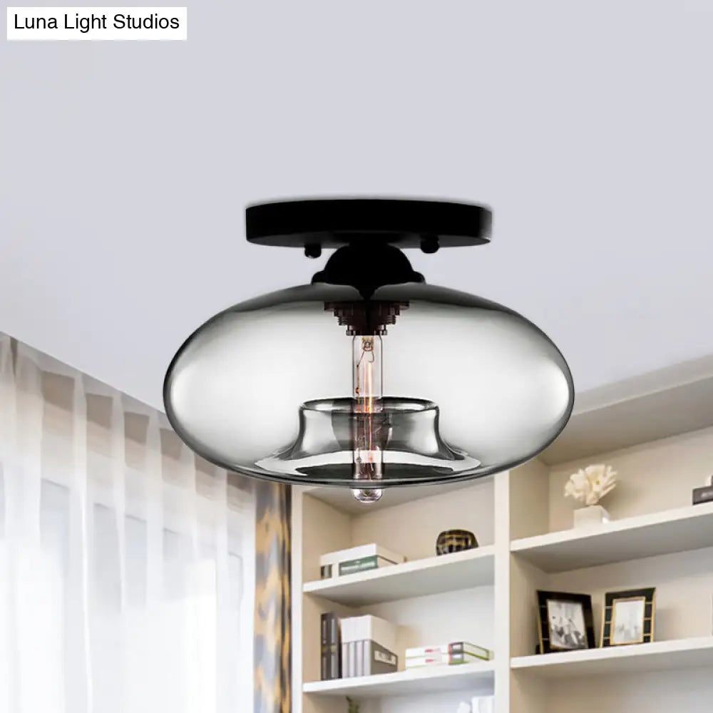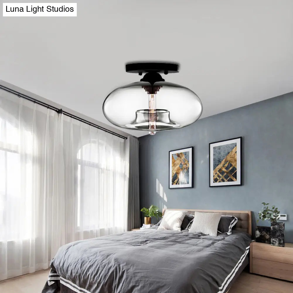 مصباح ديكوربايتس™ البيضاوي الزجاجي البسيط ذو التركيب المدمج مع مصباح واحد - تركيبات سقف شفافة/كهرمانية/دخانية للممر