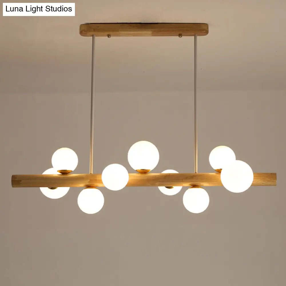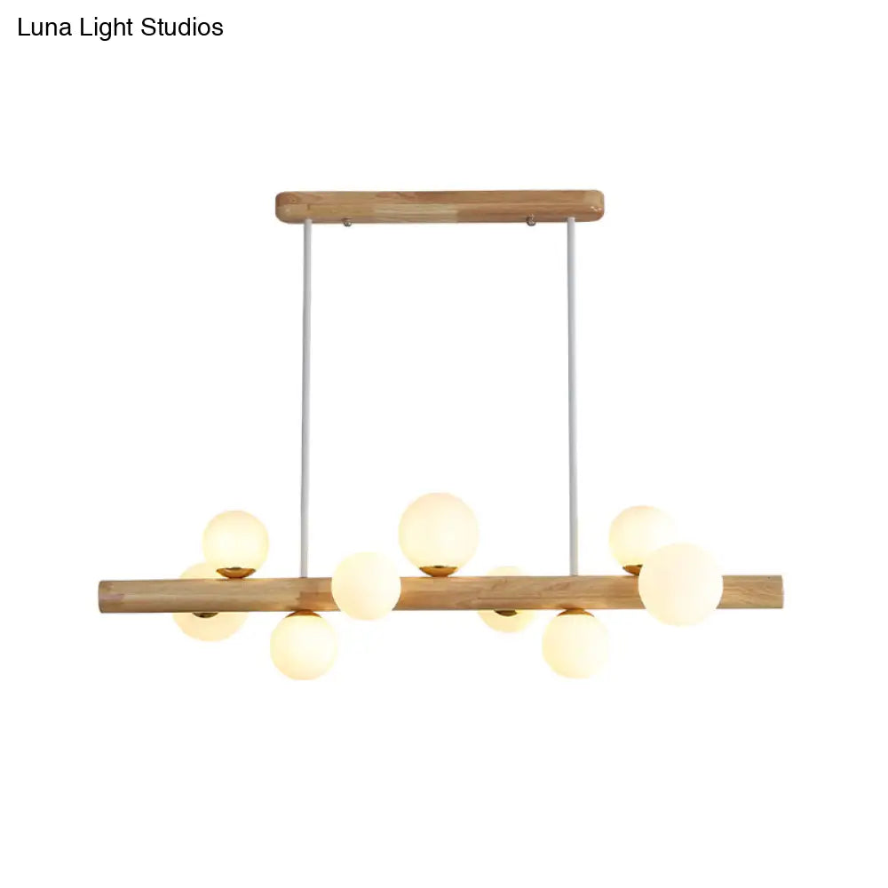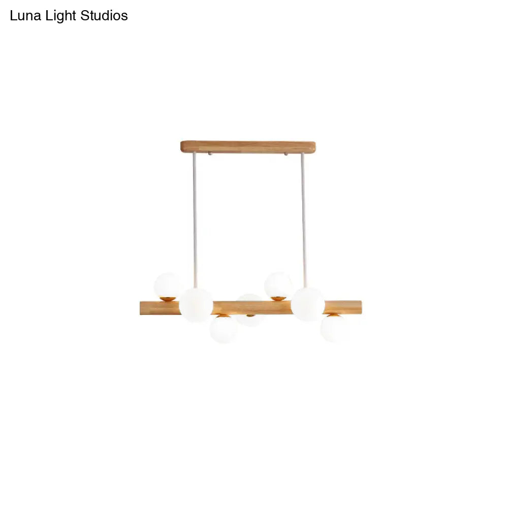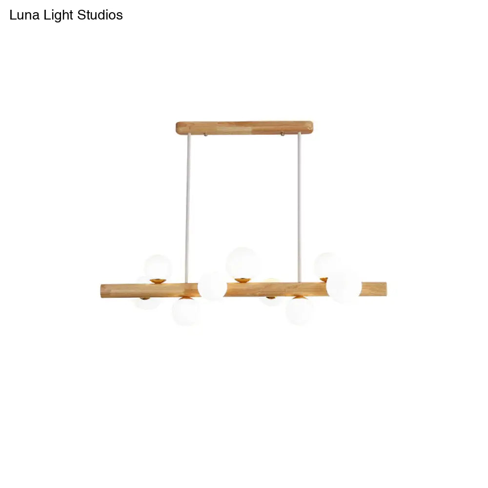 ديكوربايتس™ - مصباح سقف LED خشبي أنيق: ثريا جزيرة غرفة الطعام الخطية مع غطاء زجاجي كريمي
