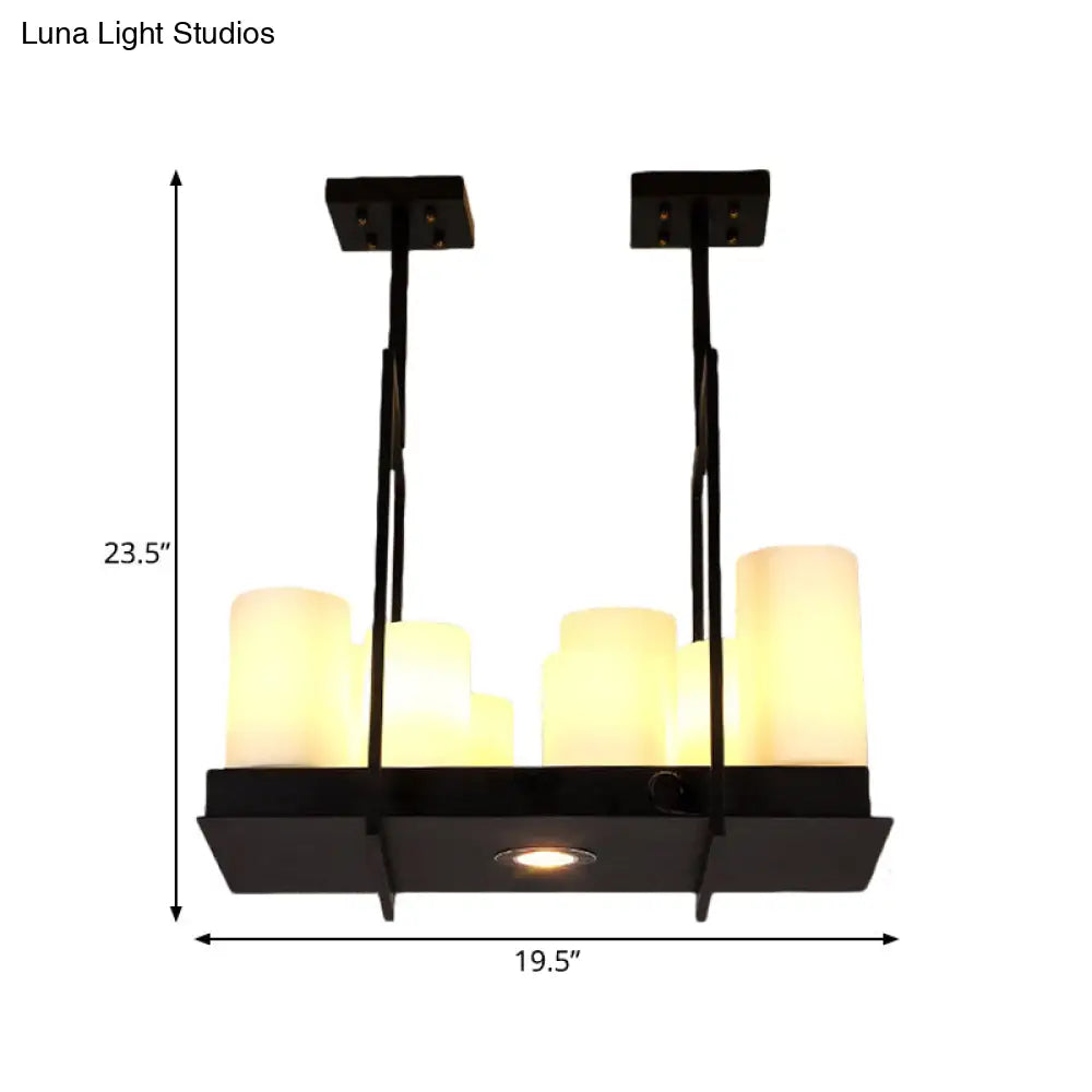 مصباح معلق تقليدي من الزجاج المصنفر على شكل برميل من DecorBites™ - مصباح معلق أسود على شكل جزيرة لغرفة الطعام - 8/12/16 مصباحًا