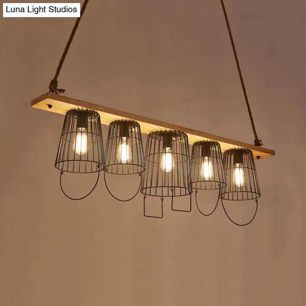 مصباح معلق معدني تقليدي على شكل برميل من DecorBites™ مع 5 مصابيح وتفاصيل خشبية لغرفة الطعام