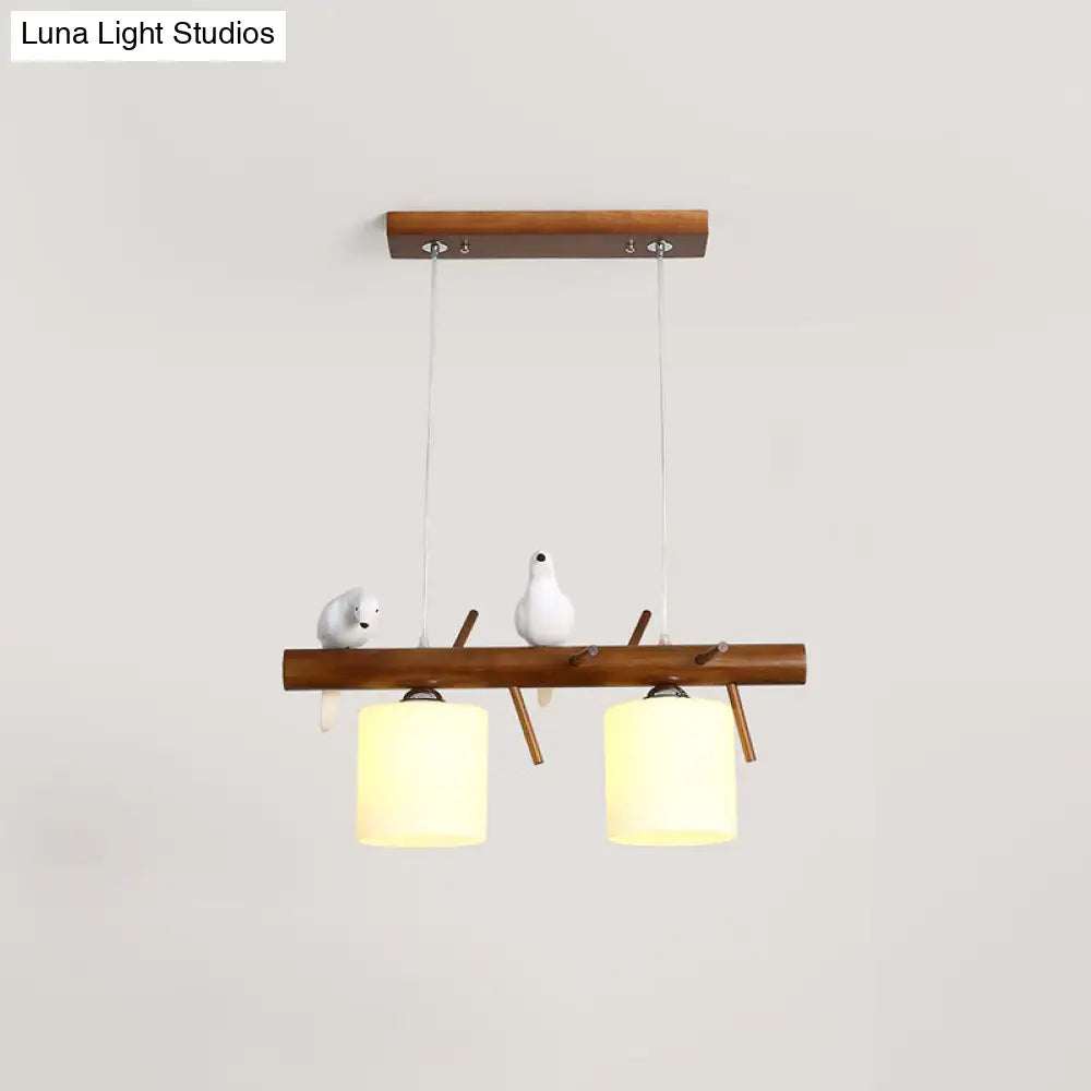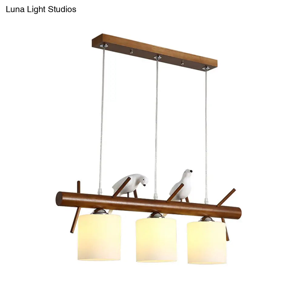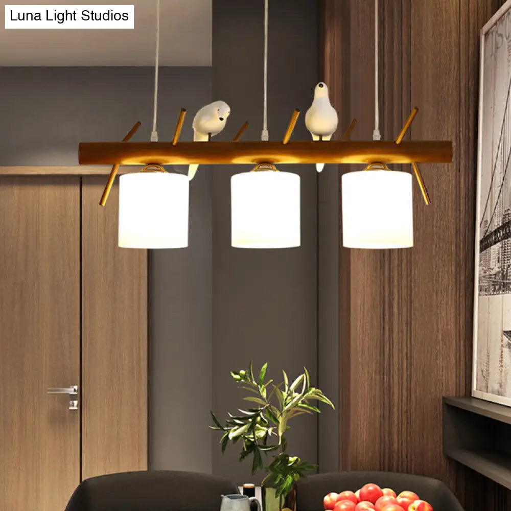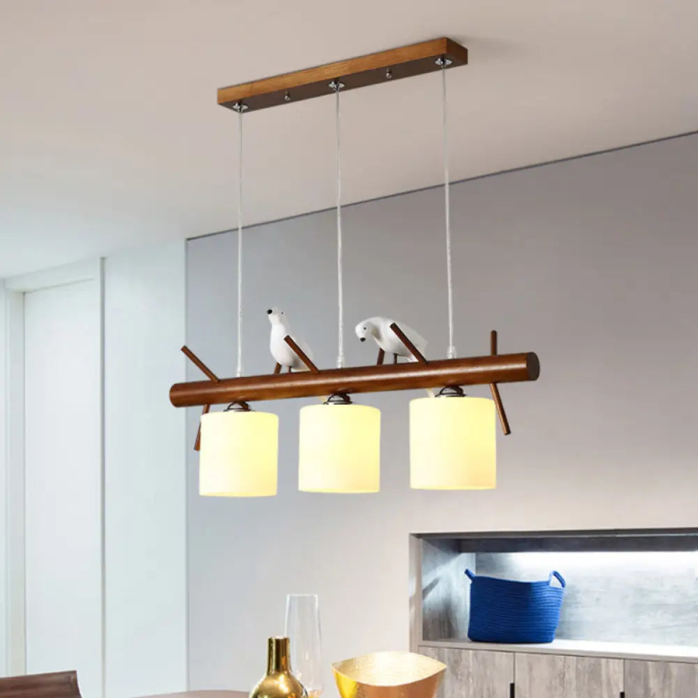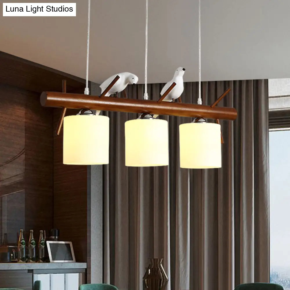 ديكوربايتس™ مصباح LED زجاجي أبيض مع طائر من الراتينج - تركيبات أسطوانية معلقة على جزيرة المطعم