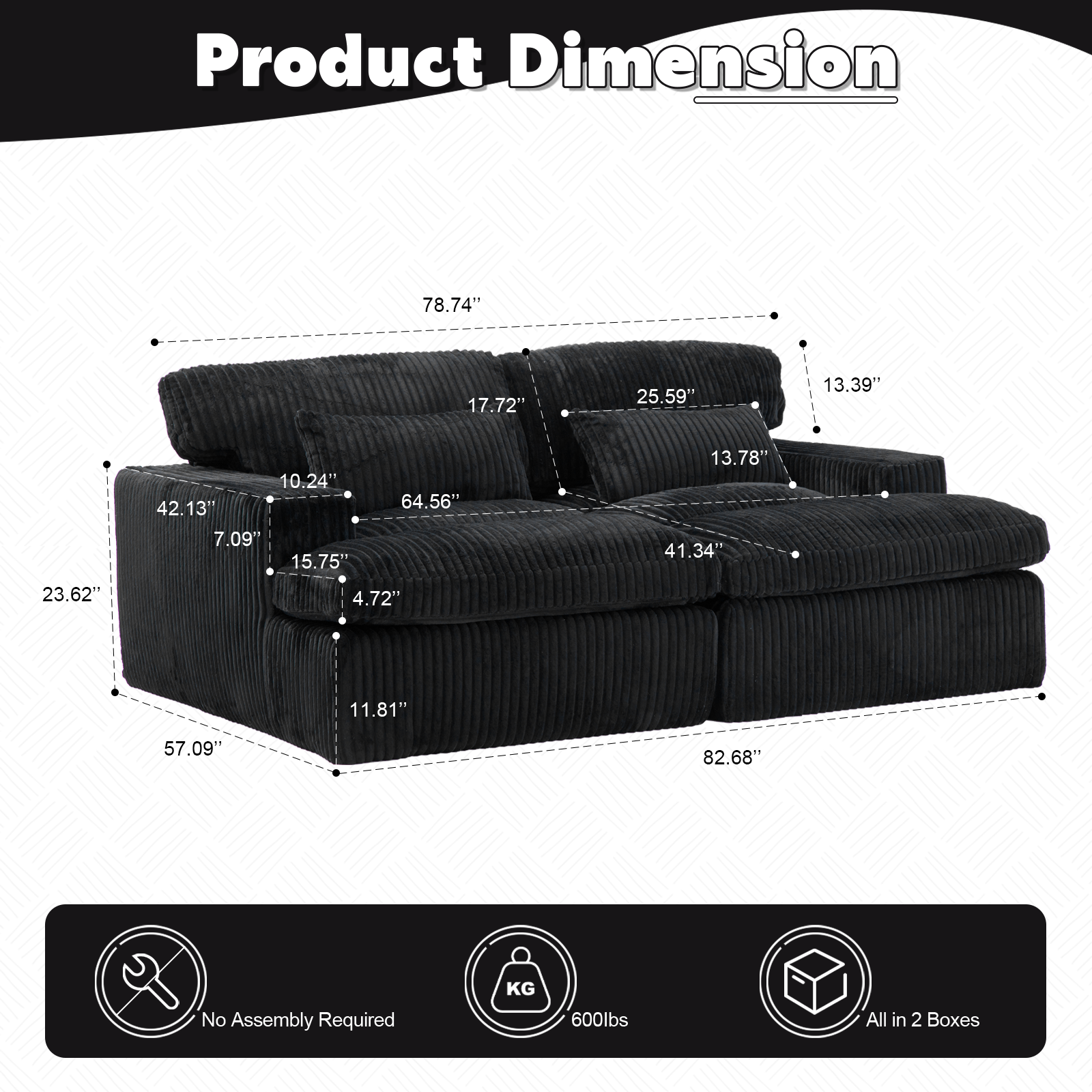 Product Name:Double Chaise Lounge Chair Indoor,Oversized Upholstered Sleeper Cloud Couch,Deep Seat Luxury Sofa Bed,Sectional Sofa Chaise Love-seat,Corduroy Reading Chair for Living Room,No Assembly Required,Black