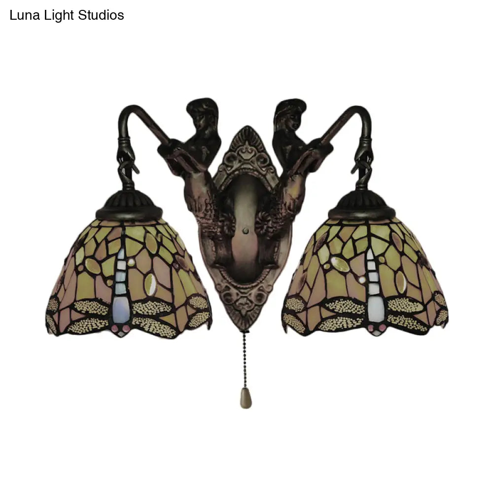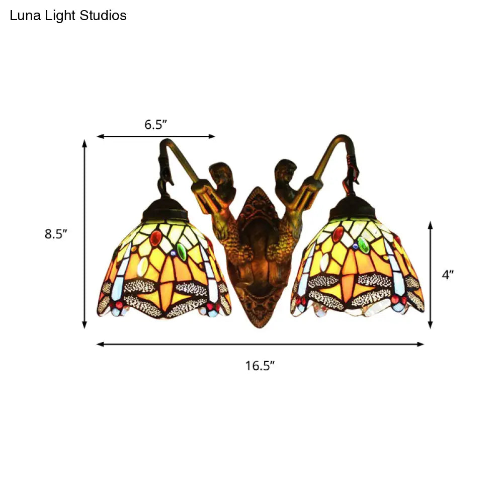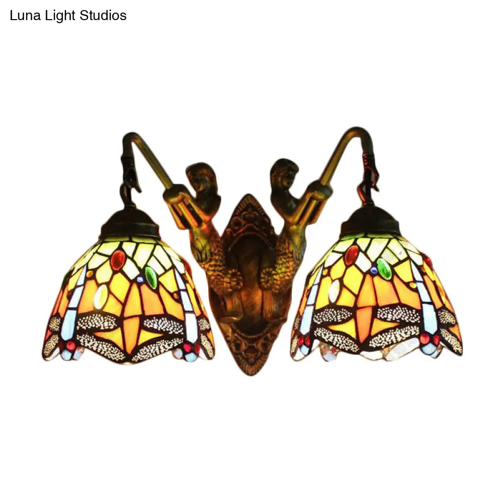 مصباح حائط على شكل يعسوب باروكي مع شمعدان زجاجي برتقالي اللون - مفتاح اختياري