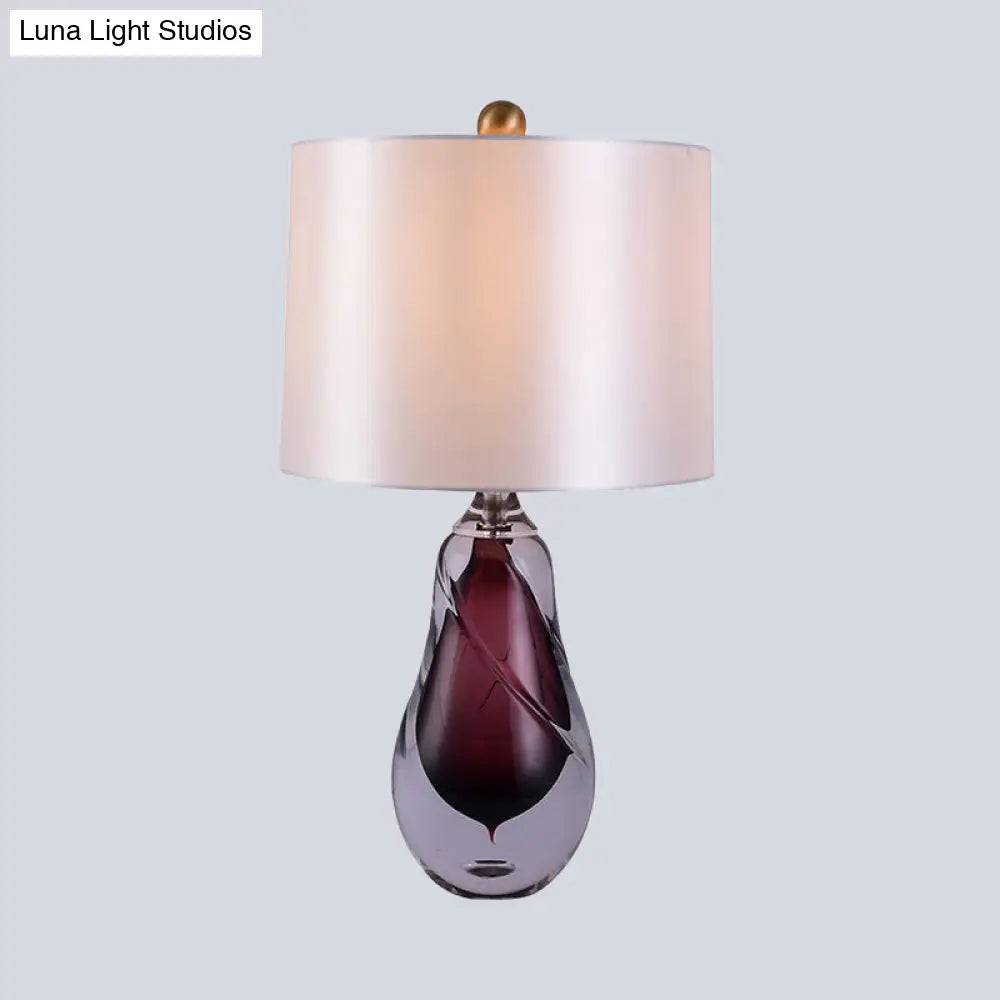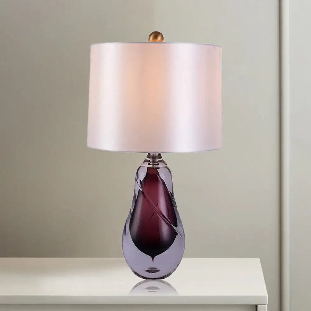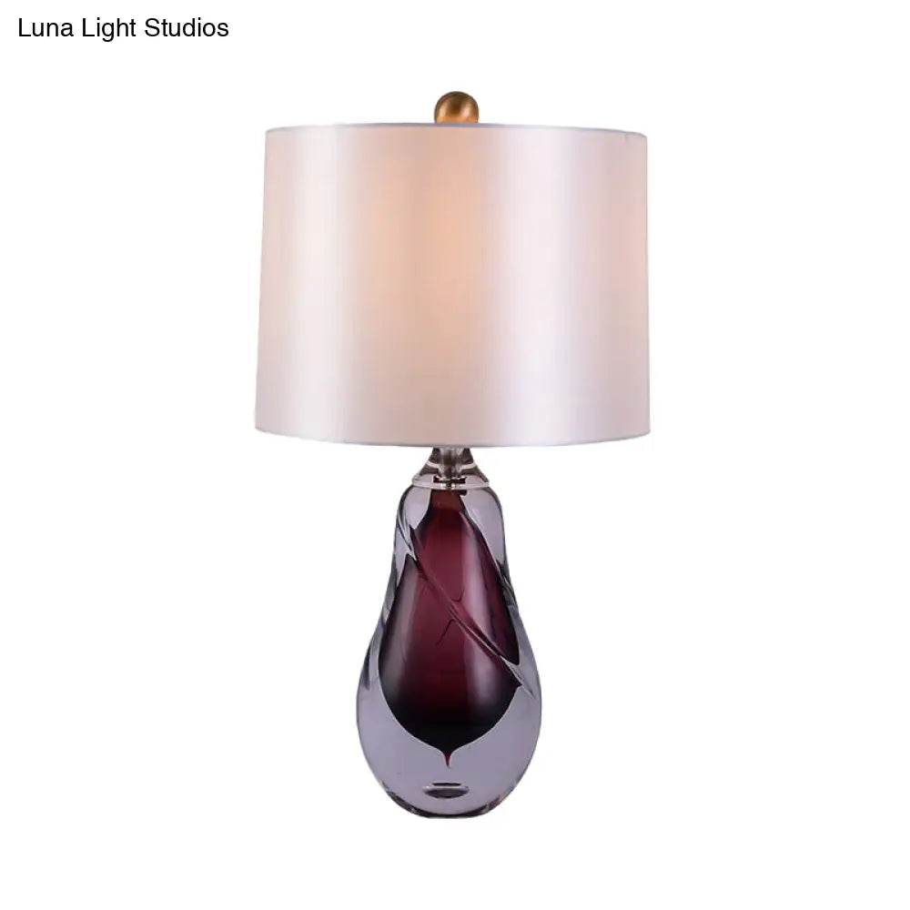 مصباح طاولة أسطواني أبيض معاصر بقاعدة من الكريستال الأحمر على شكل دمعة - مصباح مكتب صغير