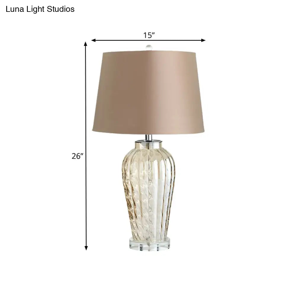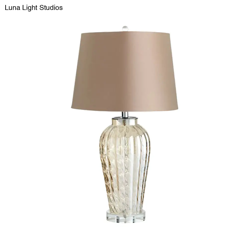 مصباح طاولة عصري على شكل أسطوانة مدببة بقاعدة زجاجية - مصباح طاولة جانبي بضوء واحد