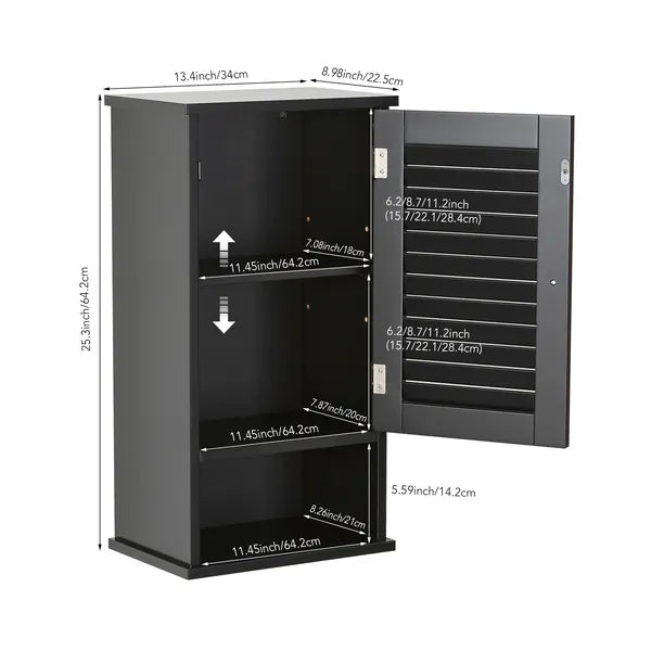 FRALIMK Medicine Cabinet, Hanging Cabinet With 3 Tiers, Single Louvered Door, Slim Wall Cabinet For Home Bathroom Bedroom, White