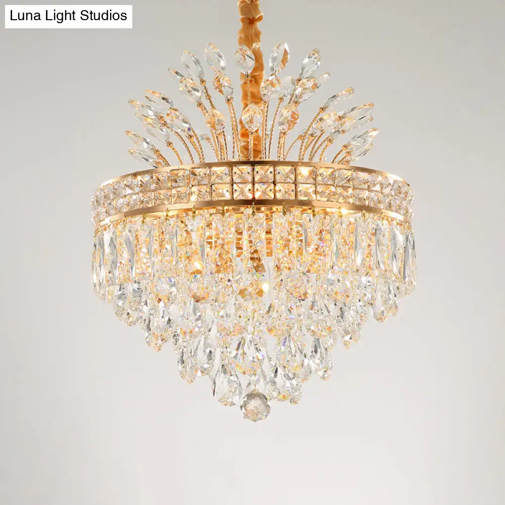 ثريا كريستال معاصرة - مصباح معلق ذهبي مكون من 9 لمبات لغرفة النوم