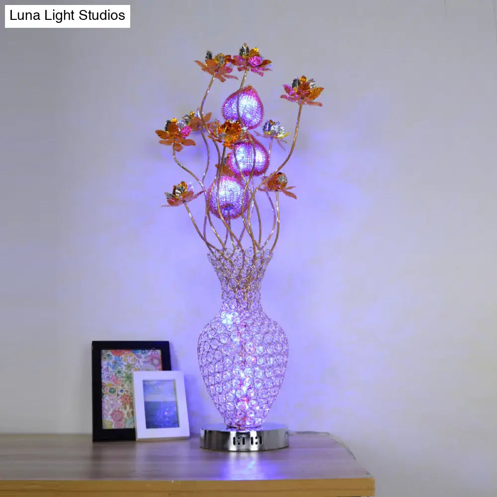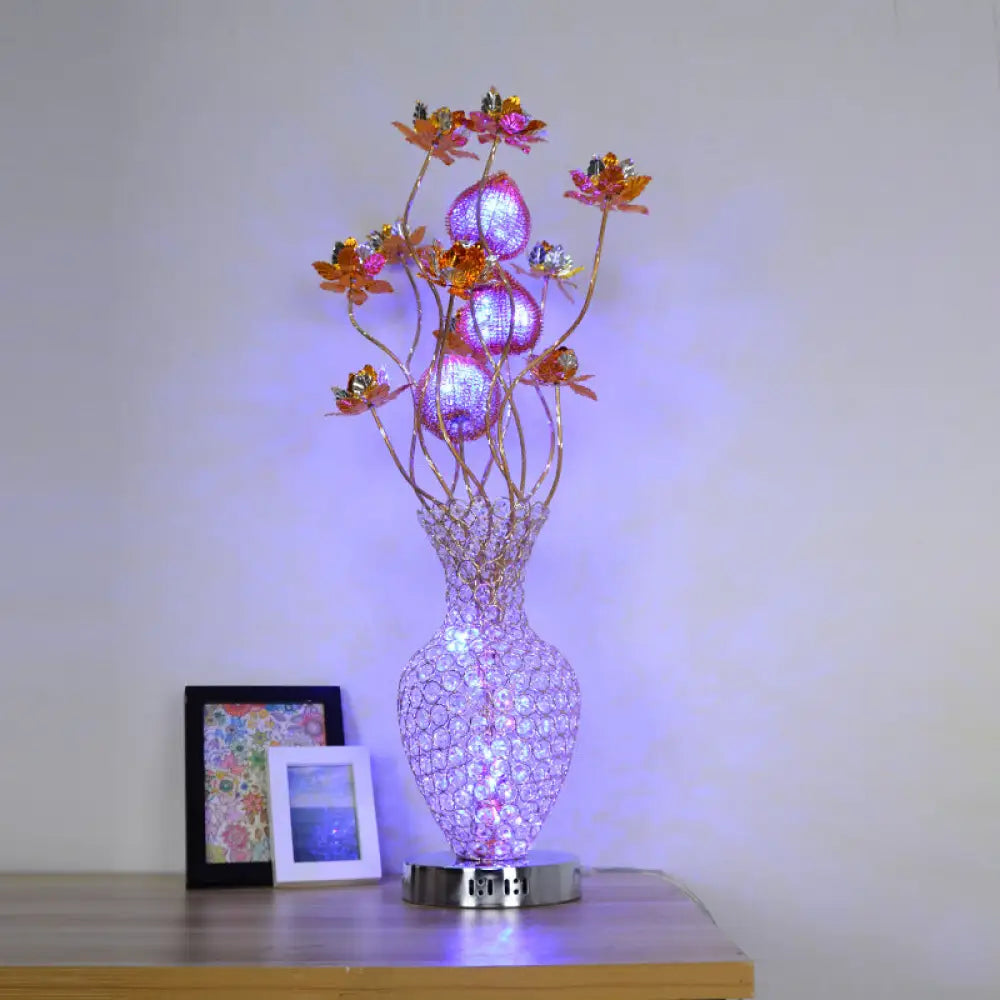 أوبري - ديكور فني لإضاءة طاولة LED ذهبية اللون، مصباح طاولة ليلية مُرصّع بالكريستال على شكل زهرة الأناناس