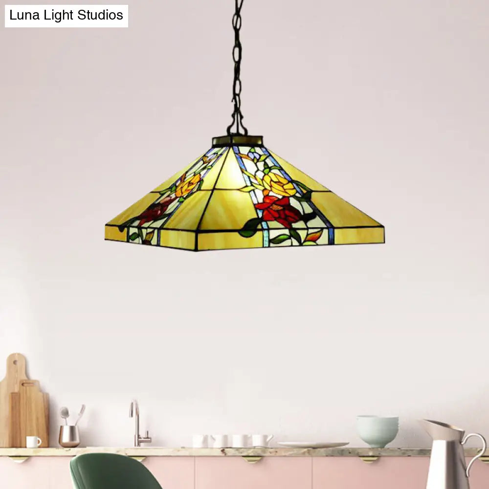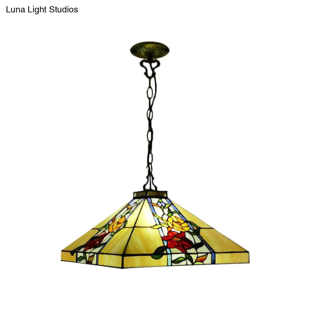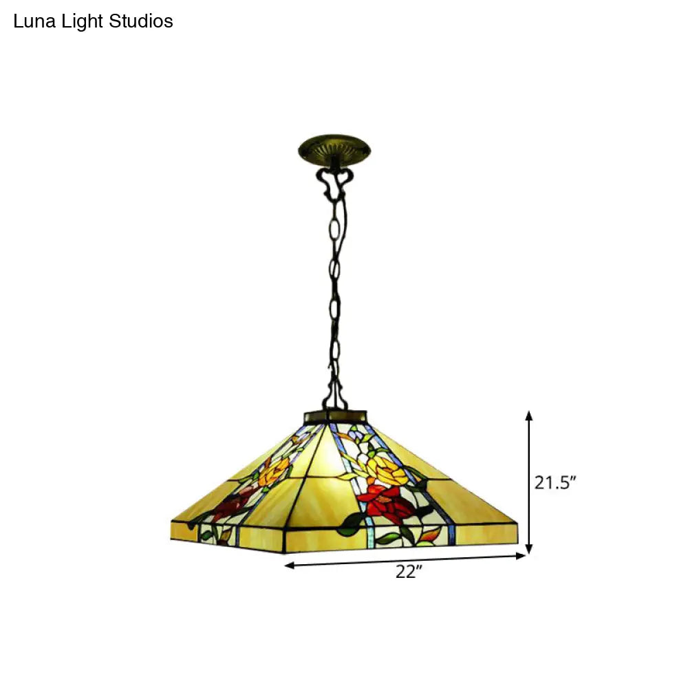 ثريا برونزية مع زجاج مقطوع يدويًا و3 مصابيح مدببة - مثالية لغرف الطعام المتوسطية
