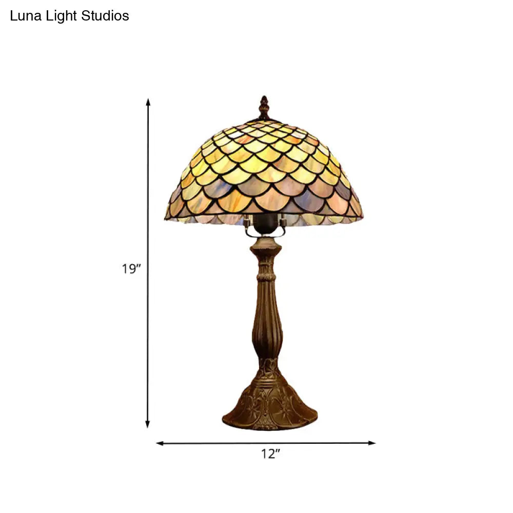 مصباح طاولة برونزي باروكي مع قبة زجاجية مقطوعة يدويًا ونقش مقياس