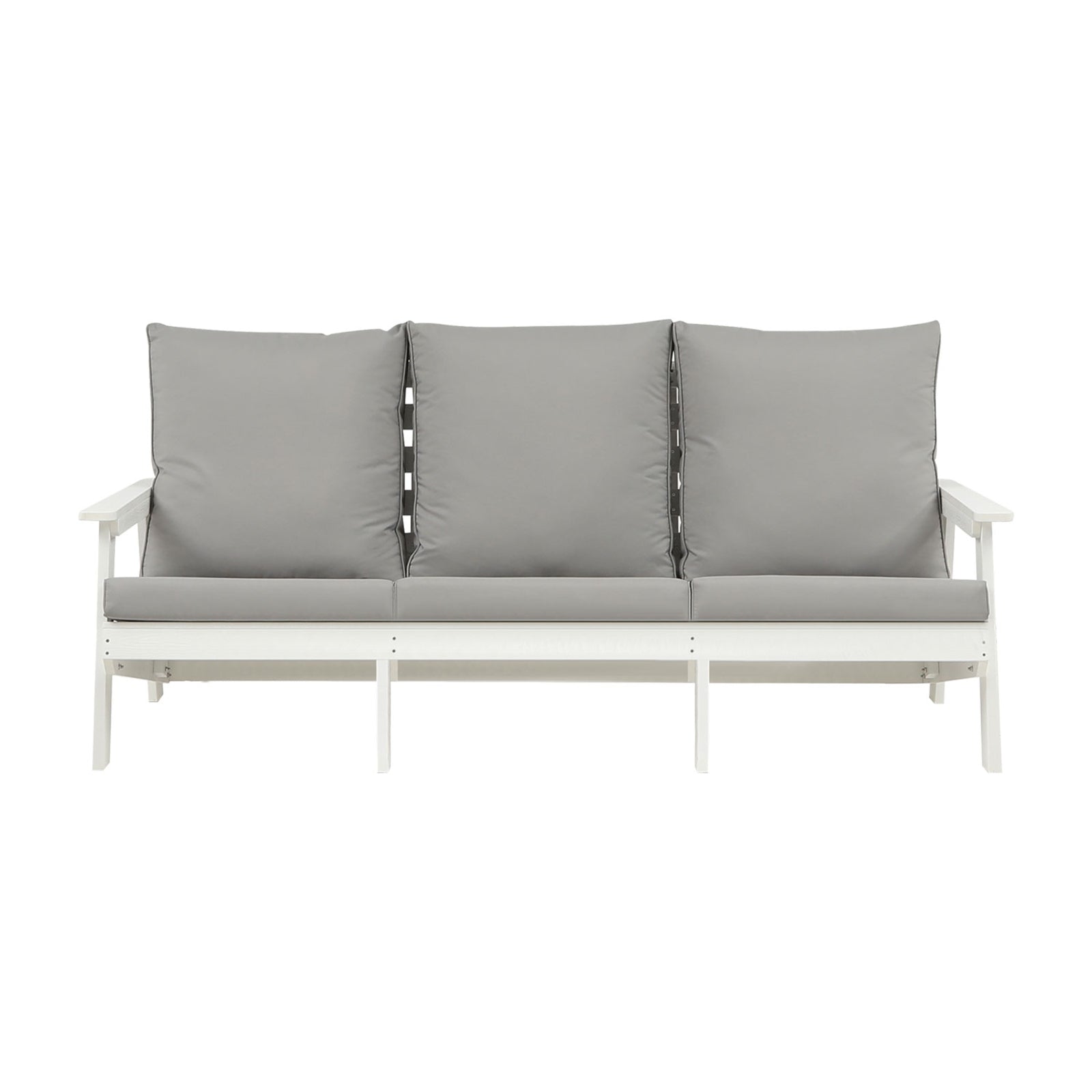 HIPS 3 Seater Sofa with Cushion, Wood Grain Outdoor Garden Sofa,White/Grey
