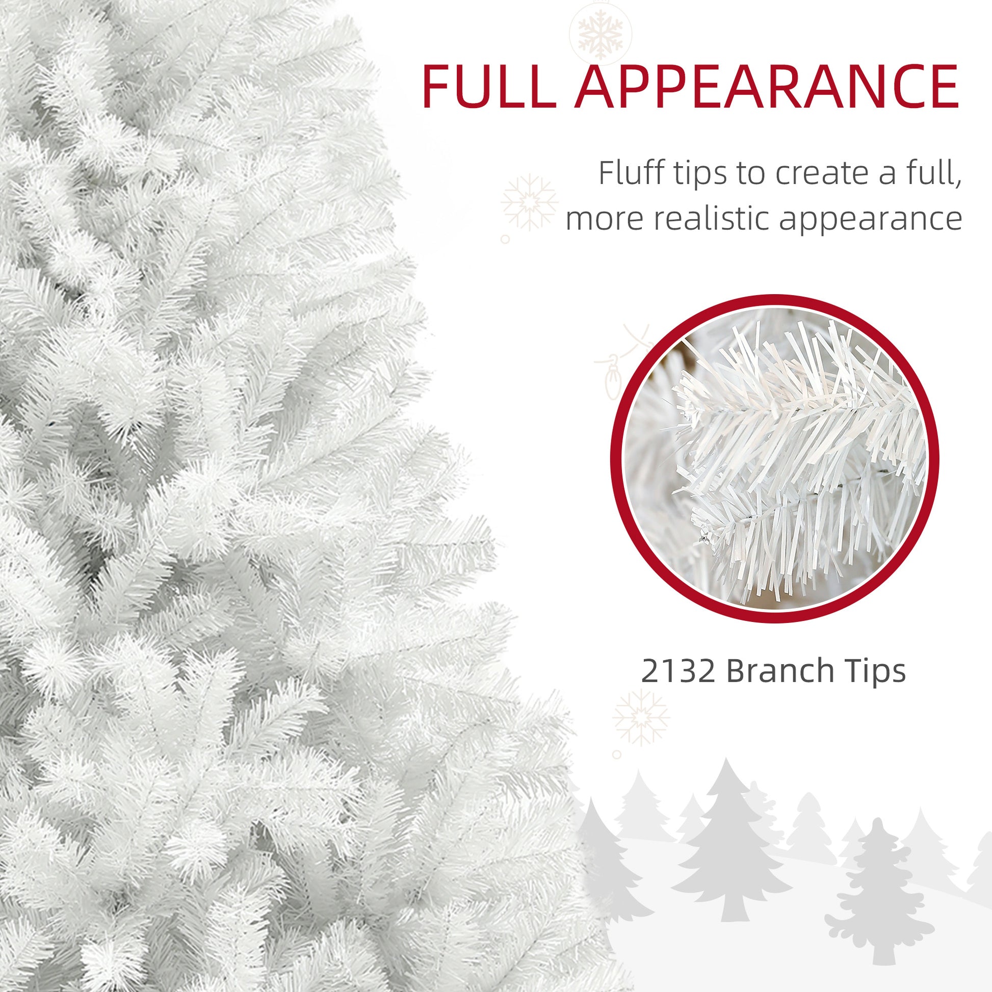 HOMCOM 9ft Tall Artificial Christmas Tree, Unlit Xmas Tree With 2132 Branch Tips, Auto Open, Steel Base, Holiday Decor For Home Office, White