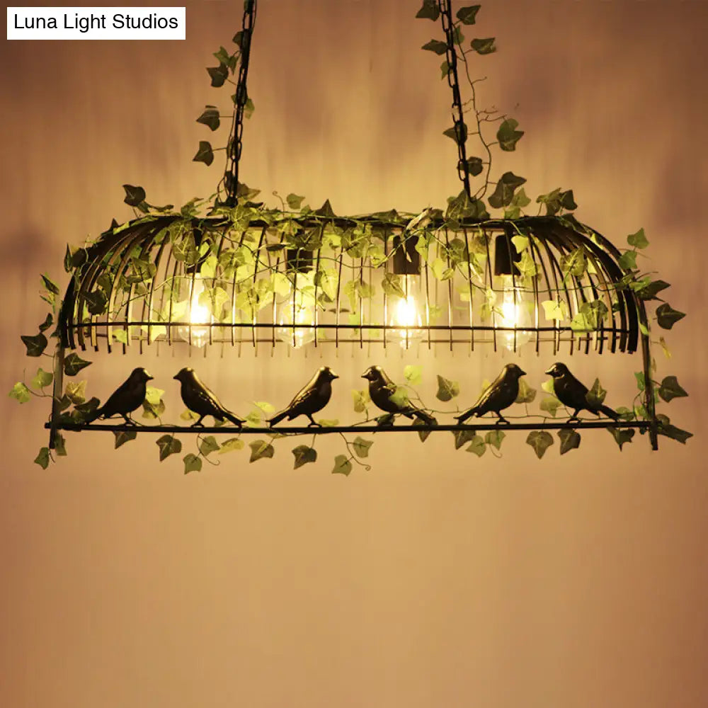 مصباح معلق على شكل قفص طيور من الحديد العتيق مع نبات اللبلاب الصناعي الأخضر - مثالي لثريا جزيرة المطعم