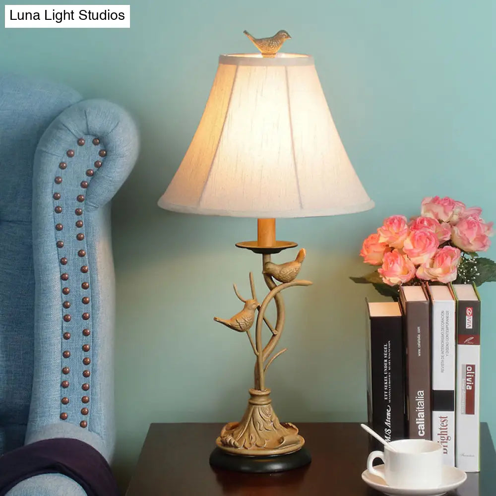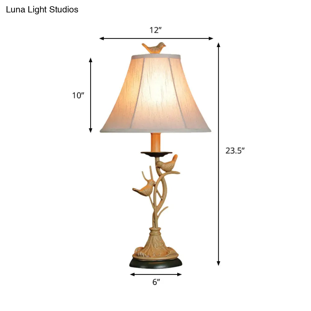 مصباح طاولة ريفي كاكي مع غطاء قماشي متسع - لمسات ساحرة من الأغصان والطيور