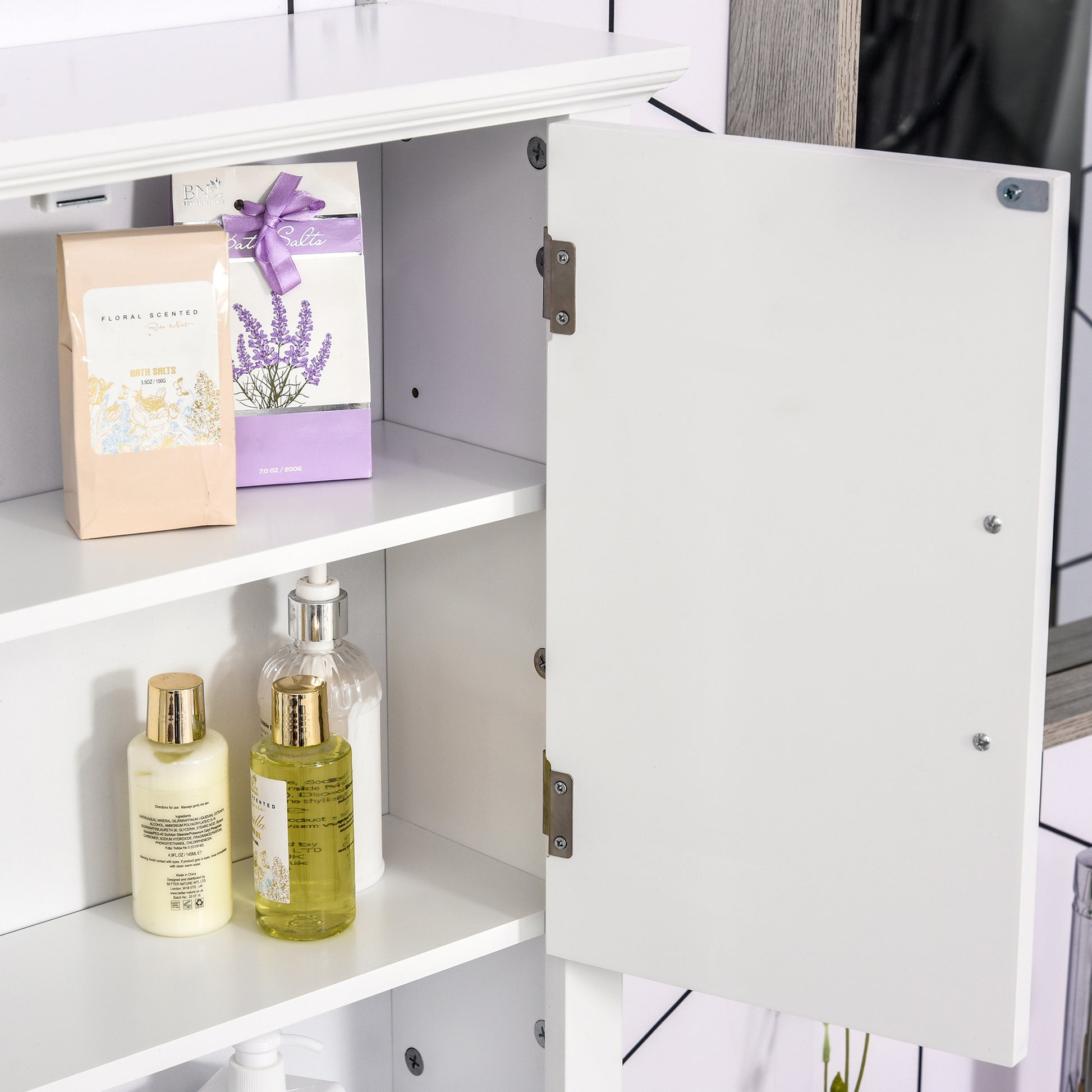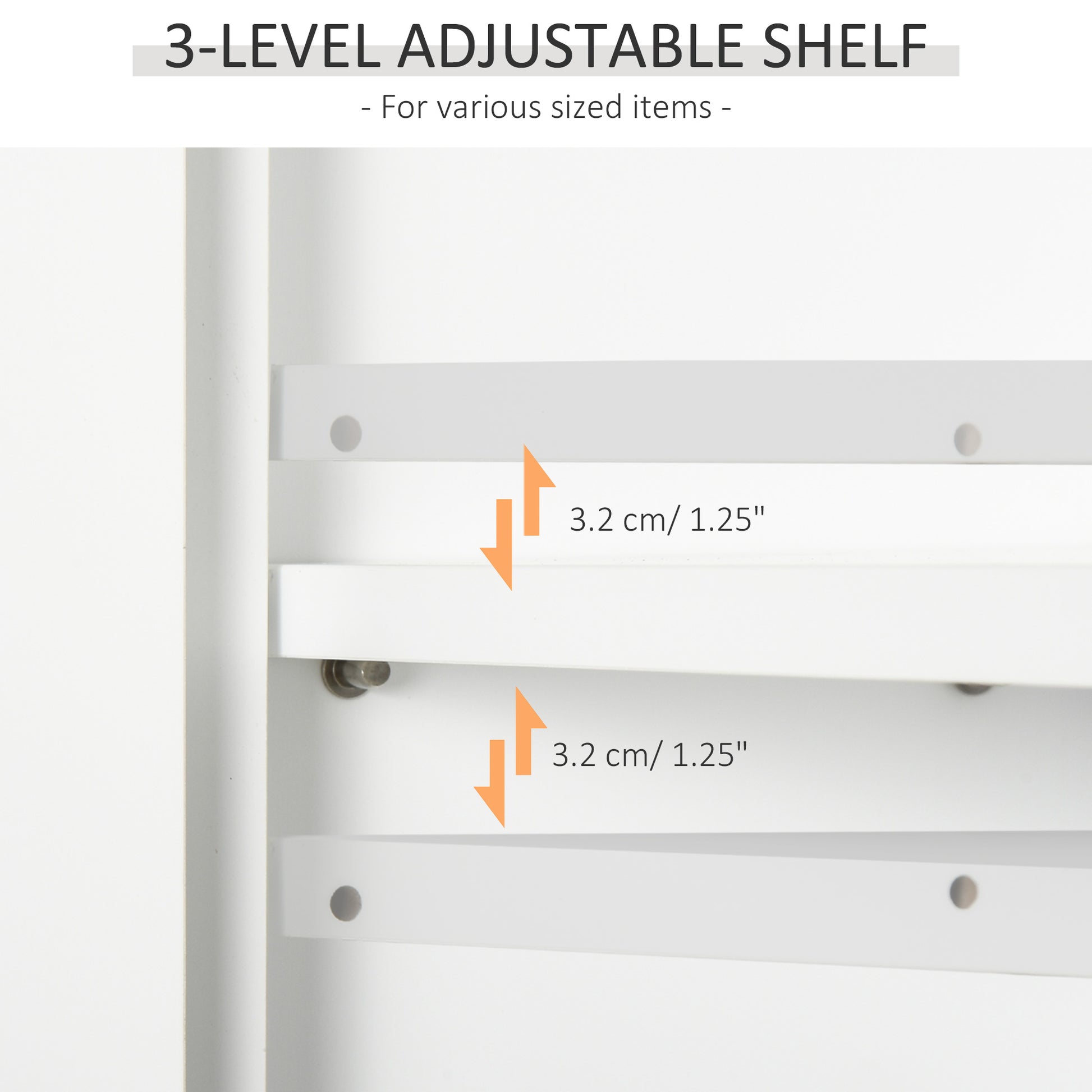 Optimize your bathroom storage space and organize your toiletries with the kleankin bathroom medicine cabinet. This wall-mounted bathroom cabinet is an excellent addition to any home with limited space. It features double doors to protect your essentials from dust and an open bottom shelf for your toothbrush cups or aromatherapy needs. Make your house feel like home with kleankin today, and enjoy a clutter-free bathroom. Features: - Wall-mounted design makes effective use of wall space - It has a doored cabinet and an open shelf for storing and displaying daily essentials - Adjustable shelf in the cabinet for items of varying sizes - Magnetic doors with aluminum knobs make opening and closed it sealed shut easy - MDF construction with a painted finish adds stability - Assembly required Specification: - Color: White - Material: MDF - Overall Dimensions: 22.75" W x 7.75" D x 24.25" H - Cabinet Inner Size: 21.25" W x 6" D x 7.5" H - Open Shelf Size: 21.25" W x 6.75" D x 7" H - Weight Capacity: 44 lbs. (Total), 11 lbs. (Shelf) - Item Label: 834-646V80WT Package Includes: - 1 x Bathroom Cabinet - 1 x Manual Optimize your bathroom storage space and organize your toiletries with the kleankin bathroom medicine cabinet. Make your house feel like home with HOMCOM today, and enjoy a clutter-free bathroom. Features: - Wall-mounted design makes effective use of wall space - It has a doored cabinet and an open shelf for storing and displaying daily essentials - Adjustable shelf in the cabinet for items of varying sizes - Magnetic doors with aluminum knobs make opening and closed it sealed shut easy - MDF construction with a painted finish adds stability - Assembly required Specification: - Color: Gray - Material: MDF - Overall Dimensions: 22.75" W x 7.75" D x 24.25" H - Cabinet Inner Size: 21.25" W x 6" D x 7.5" H - Open Shelf Size: 21.25" W x 6.75" D x 7" H - Weight Capacity: 44 lbs. (Shelf) - Item Label: 834-646V80GY Package Includes: - 1 x Bathroom Cabinet - 1 x Manual Discover the perfect blend of style and function with HOMCOM's sleek wall-mounted cabinet. Ideal for bathrooms, kitchens, or hallways, this compact yet spacious cabinet is crafted from durable engineered wood. It features an adjustable shelf behind two doors, offering customizable storage for everything from toiletries to kitchen gadgets. Its slim design maximizes space, making it a smart choice for anyone looking to enhance their small living area. Features: - An elegant design, suitable for the kitchen, bathroom, or bedroom - It's space-saving and can be mounted on a wall or over the toilet - MDF and particle board add stability - It features a two-door cabinet and a bottom shelf for storing and displaying daily essentials - The adjustable shelf in the cabinet fits various types of items - Easy to clean surface - Assembly required Specification: - Color: White - Materials: MDF, Particle Board - Overall Dimensions: 23.6" W x 7.8" D x 22.8" H - Cabinet Inner Size: 21.1" W x 5.8" D x 15.2" H - Bottom Shelf Size: 21.1" W x 5.8" D x 5.9" H - Weight Capacity: 44 lbs. (Shelf) - Item Label: 801-085 Package Includes: - 1 x Bathroom Cabinet - 1 x Manual.