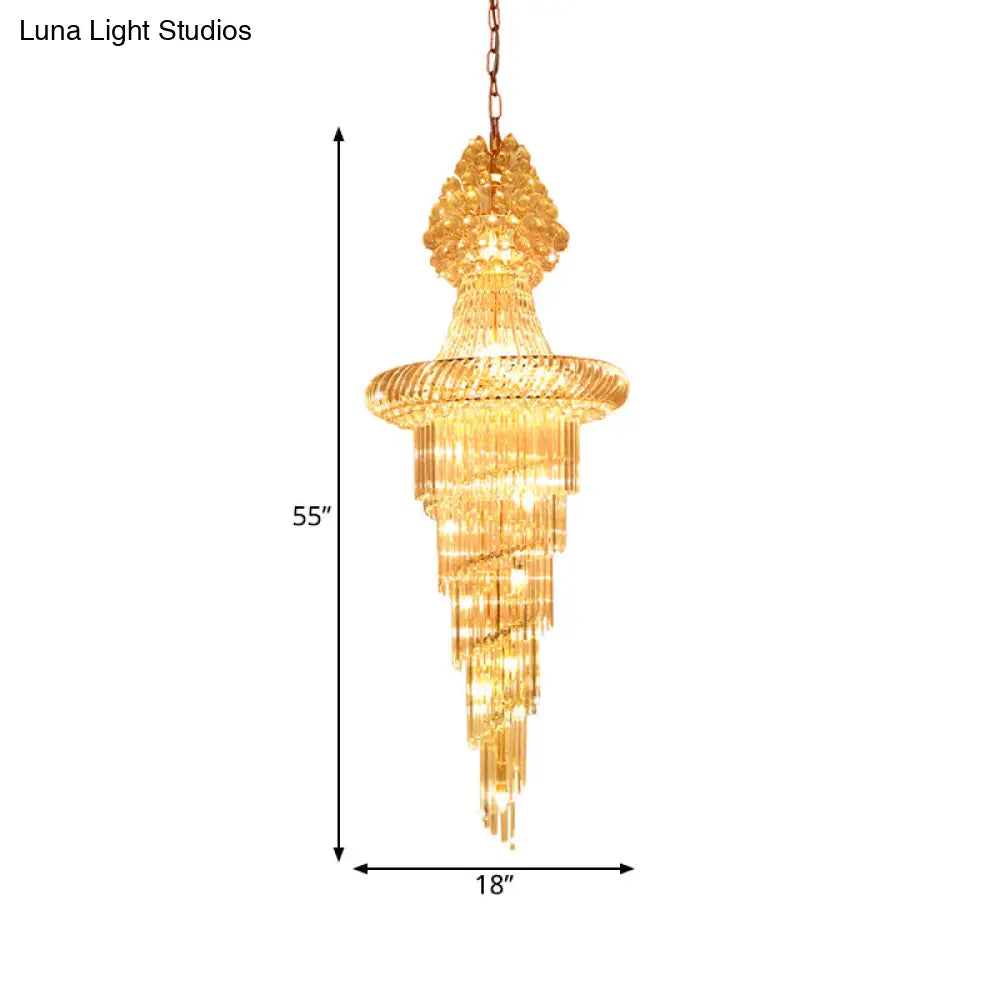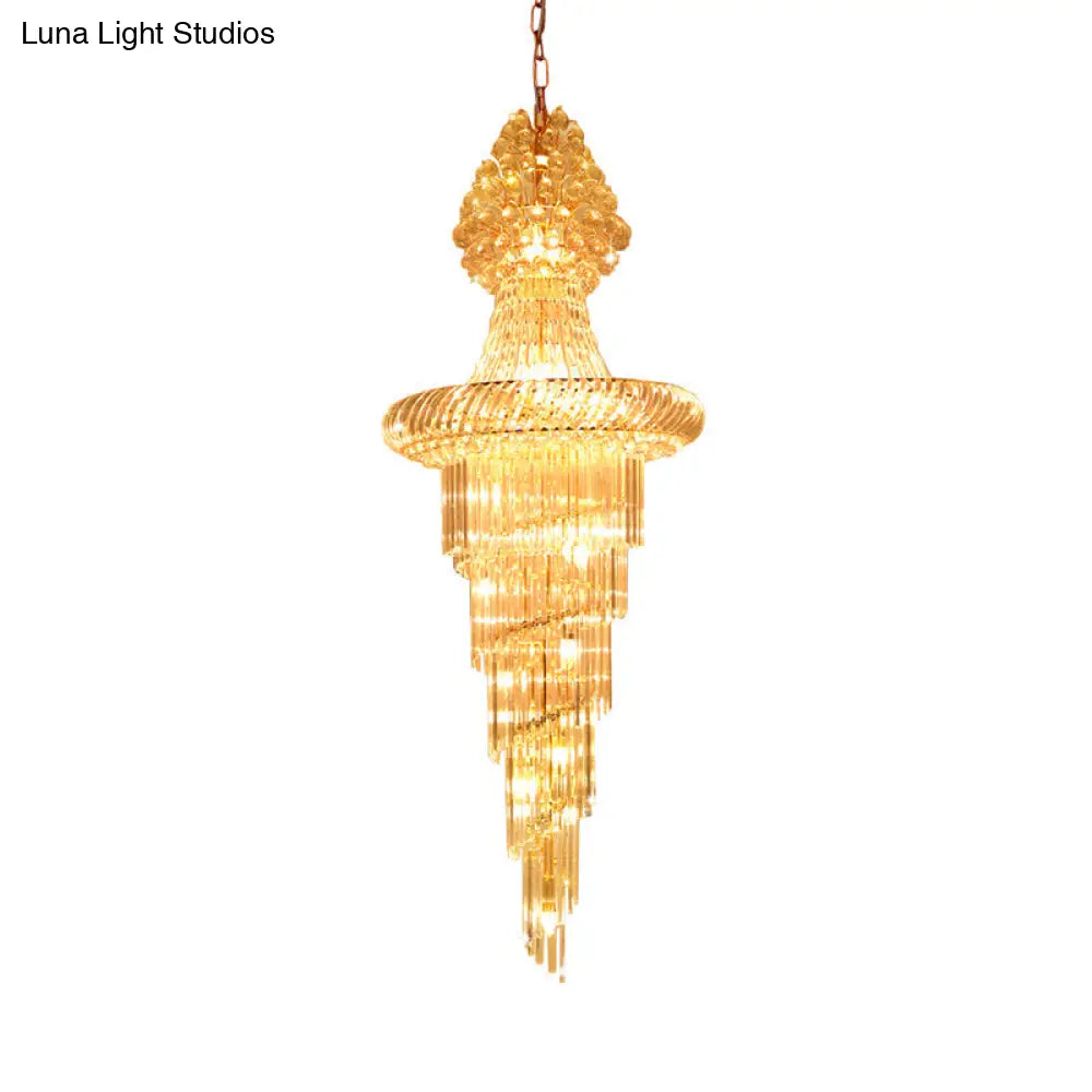 ثريا كريستال حديثة - تصميم مخروطي متعدد الطبقات مع 14 مصباحًا ذهبيًا معلقًا