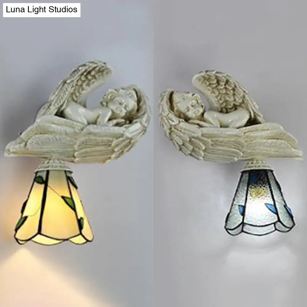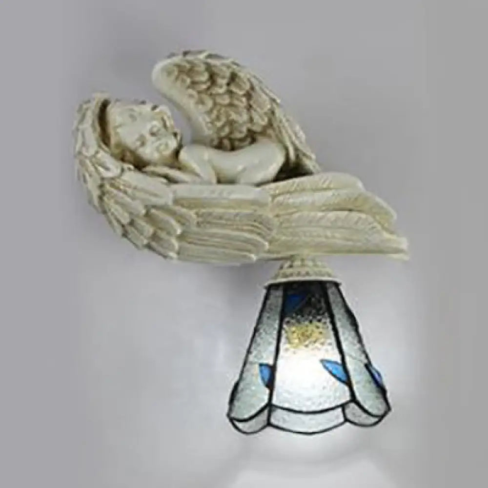 مصباح حائط على شكل ورقة ملاك نائم من الراتينج بتصميم ريفي - زجاج ملون، شفاف/بيج