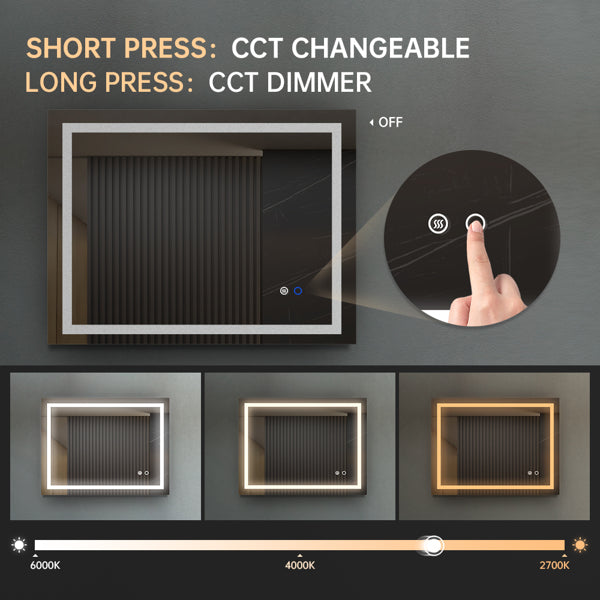 LED Mirror with Touch Buttons control,Anti-Fog LED bathroom Vanity Mirror
