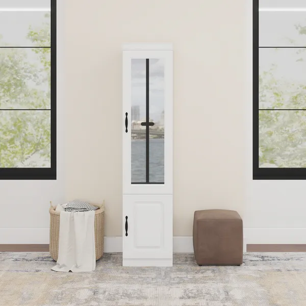 Livelylodge Slim White Storage Cabinet With Glass Door – Space-Saving Tall Organizer With Metal Handles, Perfect For Small Spaces Or Bedroom Use