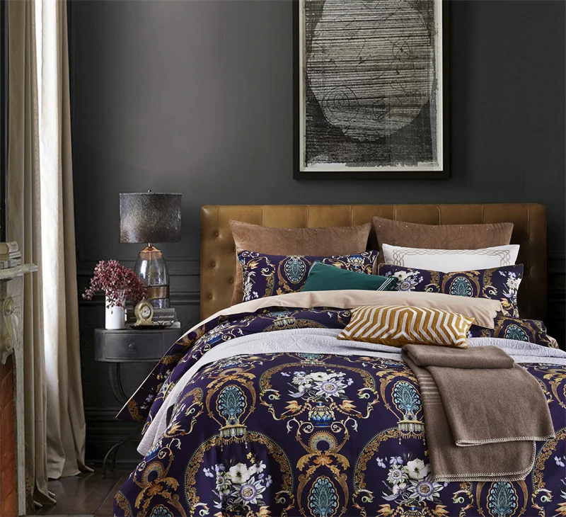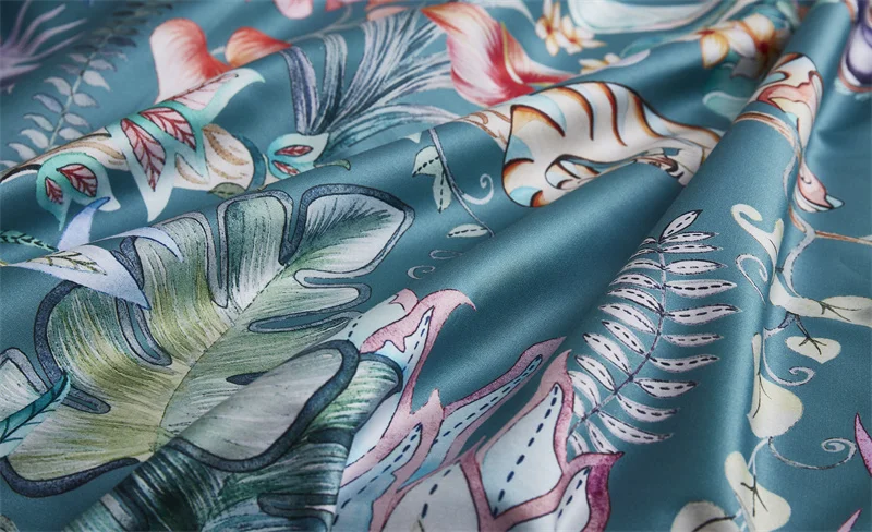 قماش قطني مصري 60S. مع عدد وكثافة عالية، ملمس ناعم وحريري. استخدام الطباعة ثلاثية الأبعاد التفاعلية النقية. نمط واضح، ثبات اللون عالية، فاخر جدا، لا مواد ضارة تضاف في الطباعة والصباغة، لا يتلاشى ويحمي الصحة.