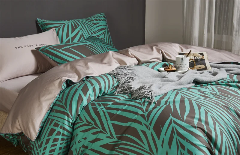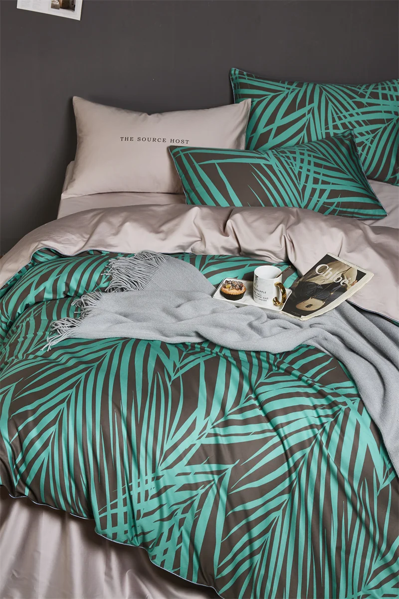 طقم فراش فاخر من القطن المصري DecorBites™ بنقشة أوراق الفلامنغو