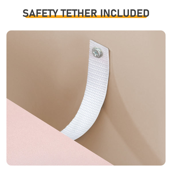 This cabinet is finished in a beautiful Macaroon Pink shade with a textured linen-laminate surface. This stylish finish is not only visually appealing, adding a soft and modern pop of color to any room, but it is also highly durable, resistant to scratches, and easy to clean, ensuring the piece remains looking fresh and vibrant for years to come. -