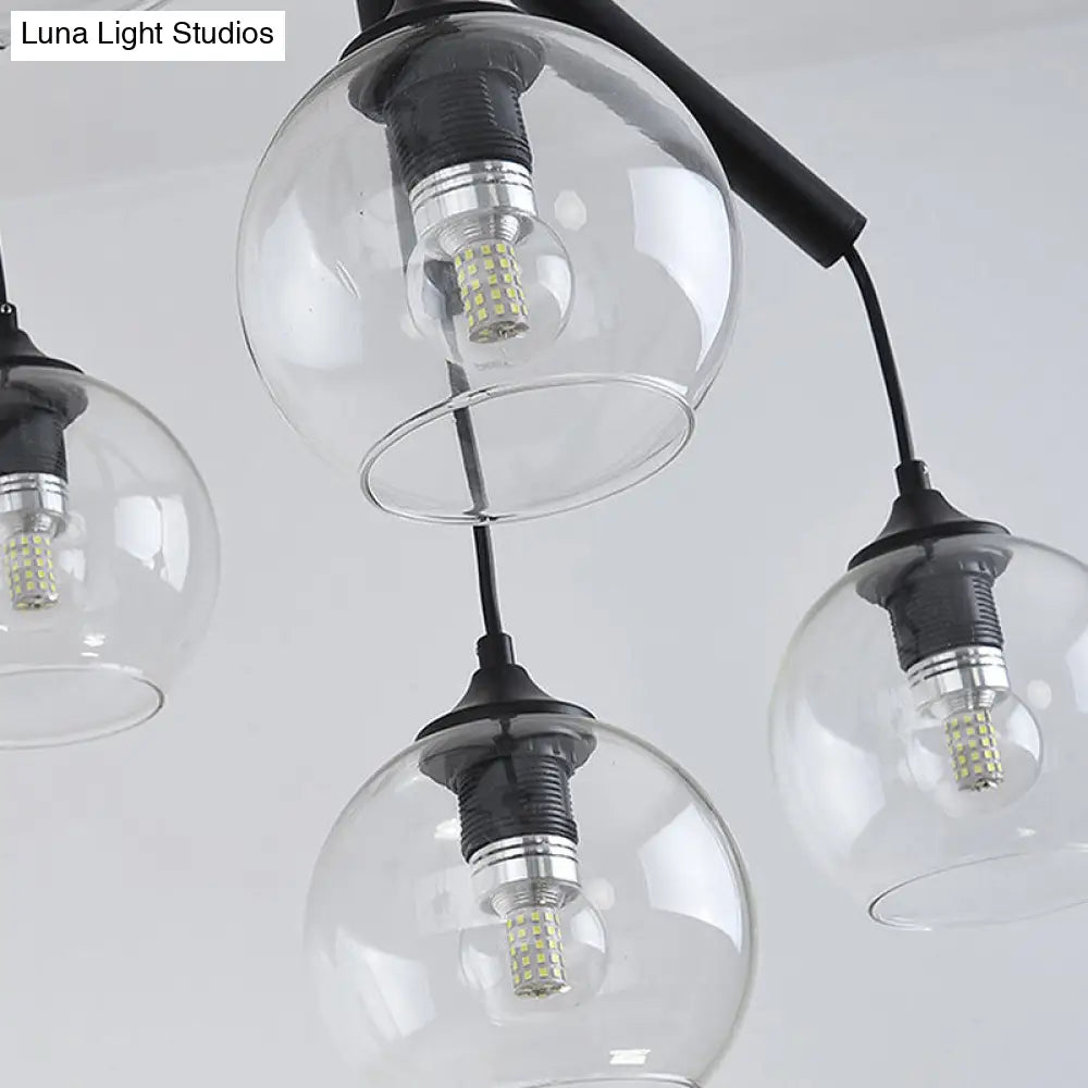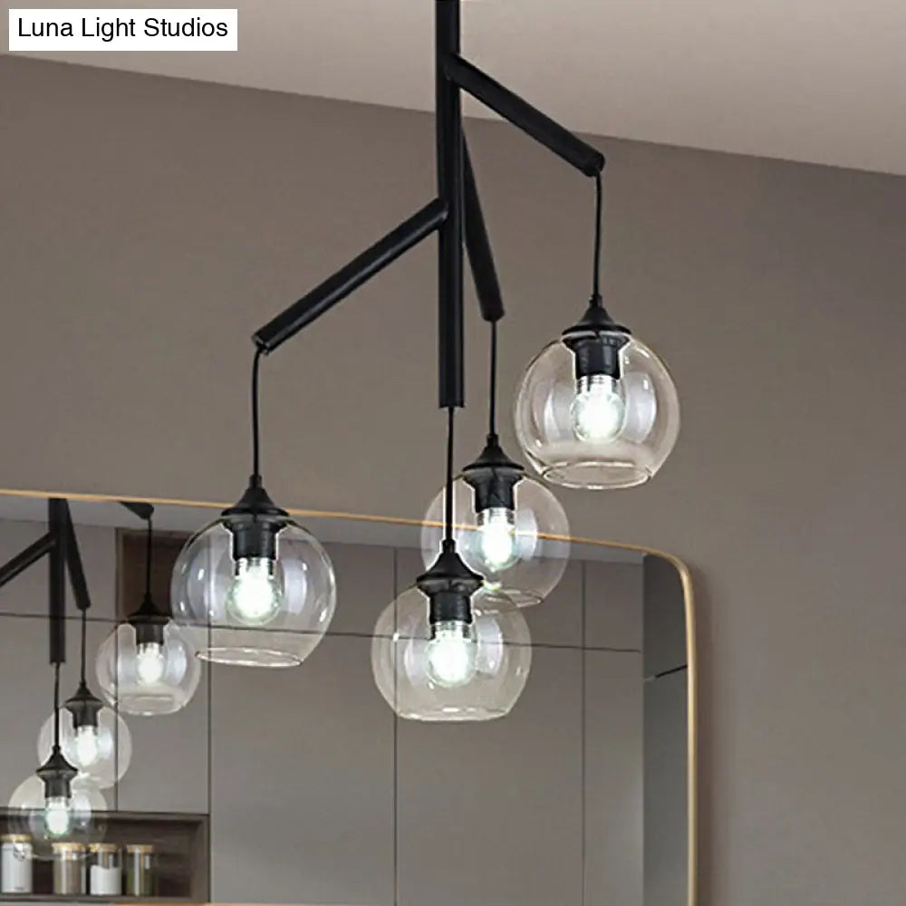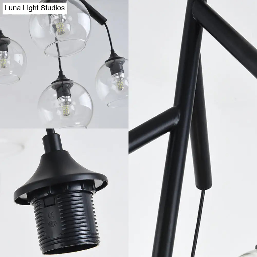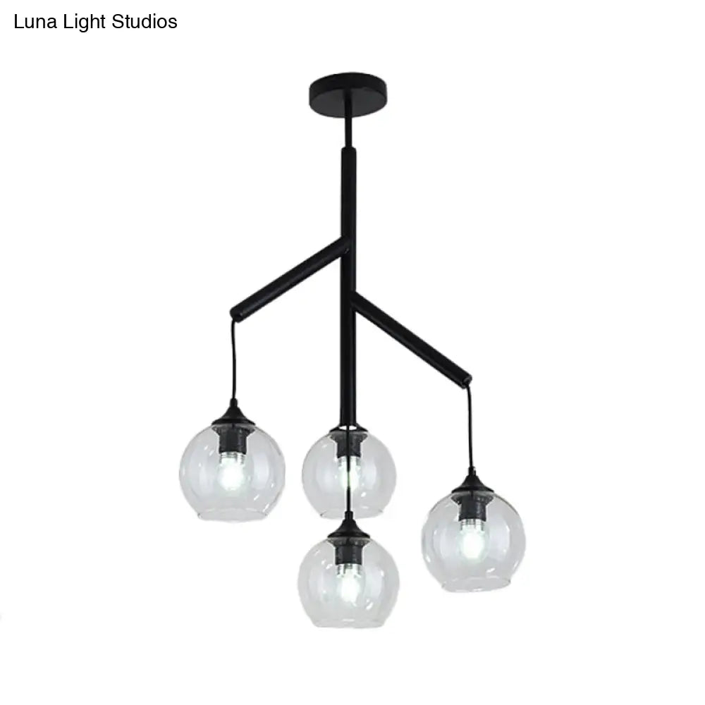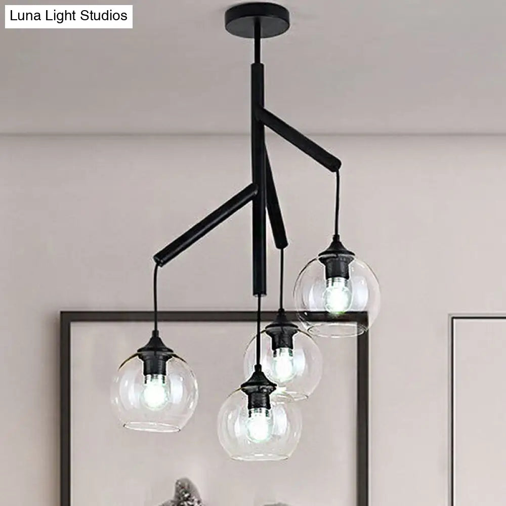 ثريا معدنية معاصرة على شكل فرع - مصباح معلق أسود بأربعة مصابيح مع غطاء زجاجي شفاف